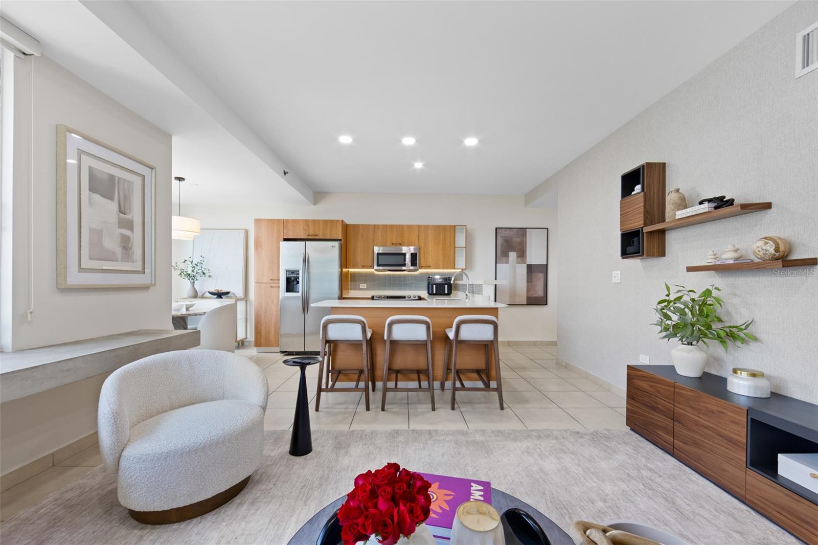 Enjoy the urban lifestyle in this tastefully furnished 1,022 sq ft, 2-bedroom, 2-bathroom condo located in the beating heart of Santurce at Ciudadela. This residence features an open floor plan with picturesque views of the Ciudadela Piazza and San Juan Bay.