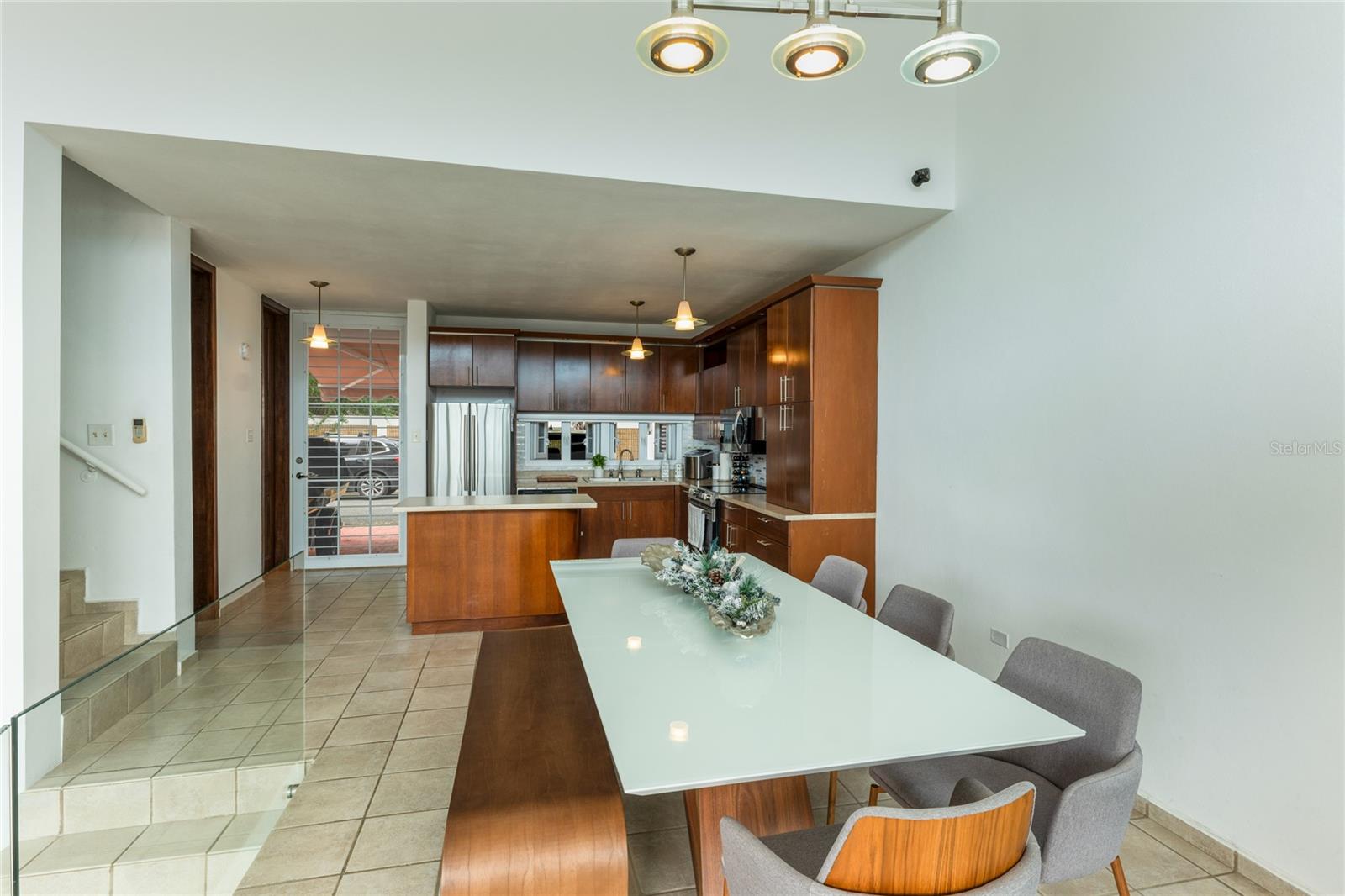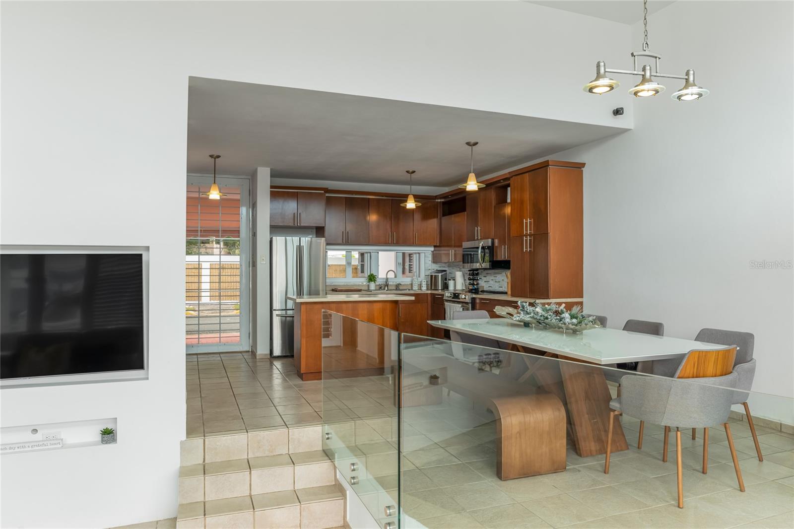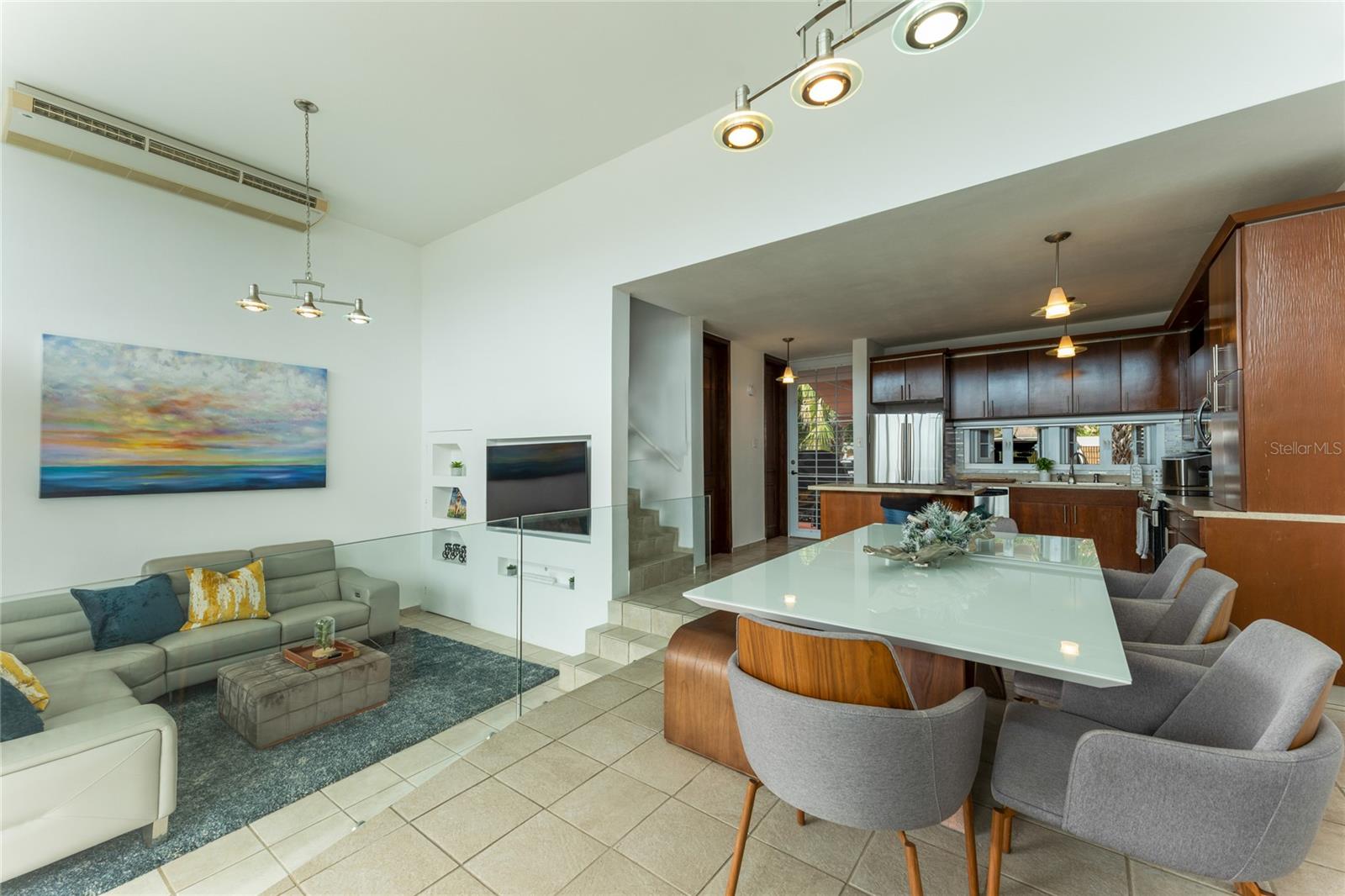 The first level showcases an elegant open-concept design, seamlessly integrating the kitchen, living, and dining areas. Expansive sliding glass doors open directly to the private dock, creating a perfect indoor-outdoor flow and an ideal setting for entertaining while enjoying the marina views.
