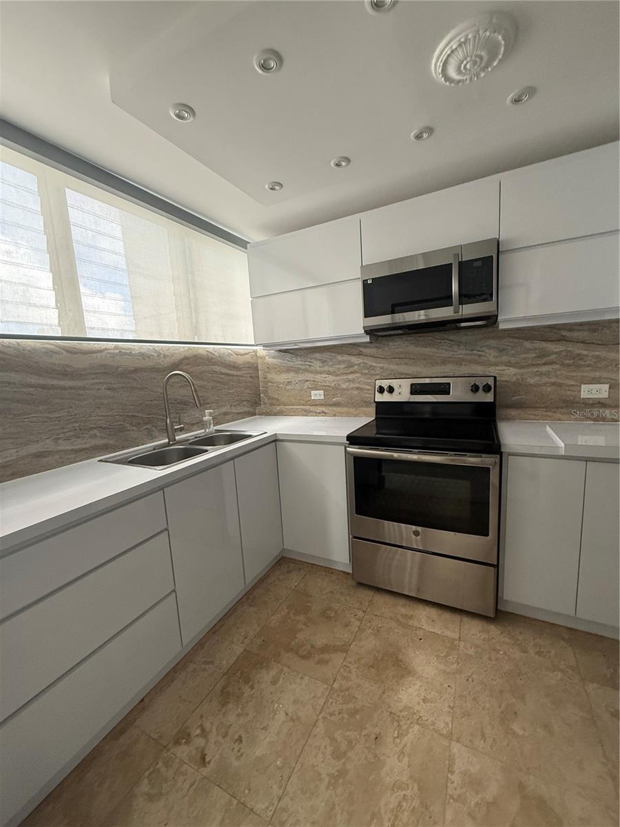 The apartment includes appliances such as stove, refrigerator, and washer/dryer combo. It also offers 1 assigned parking space, controlled access, backup generator and water cistern for common areas, with apartment backup power coming soon.