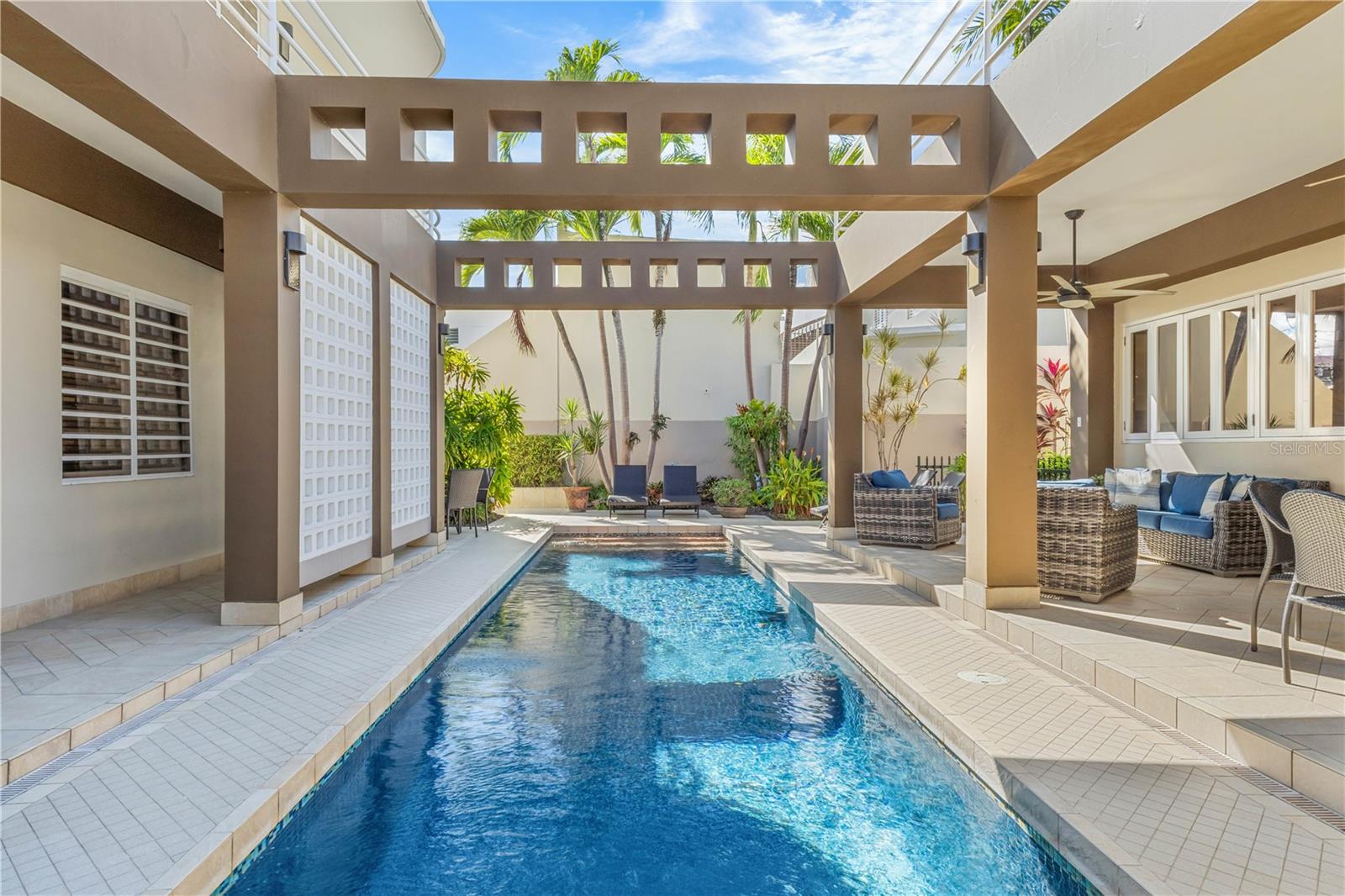 Additional Features: Two 1-car garages plus additional parking for up to 4 vehicles for a total of 6 parking spaces, swimming pool with dedicated pool bathroom, over 1,500 sq ft of open rooftop terraces, 50 kVA full-property generator, two 600-gallon stainless steel water tanks with pump systems, solar and electric water heaters, 3 central air conditioning systems plus 1 mini-split air conditioning system.