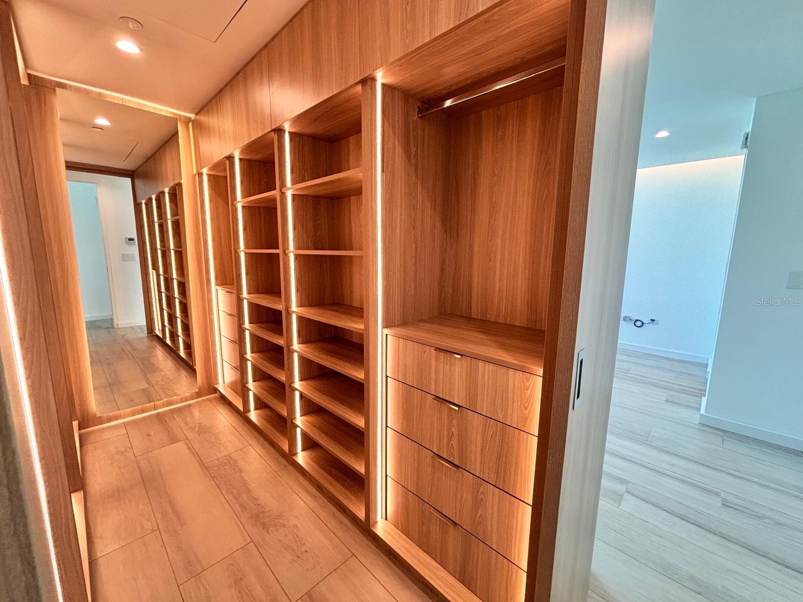 The expansive living and dining areas flow effortlessly into a designer kitchen featuring a large quartz island, sleek cabinetry, and premium finishes—ideal for both entertaining and everyday living. The primary suite boasts a custom walk-in closet with a modern, boutique-style design, creating a refined and highly functional private retreat.