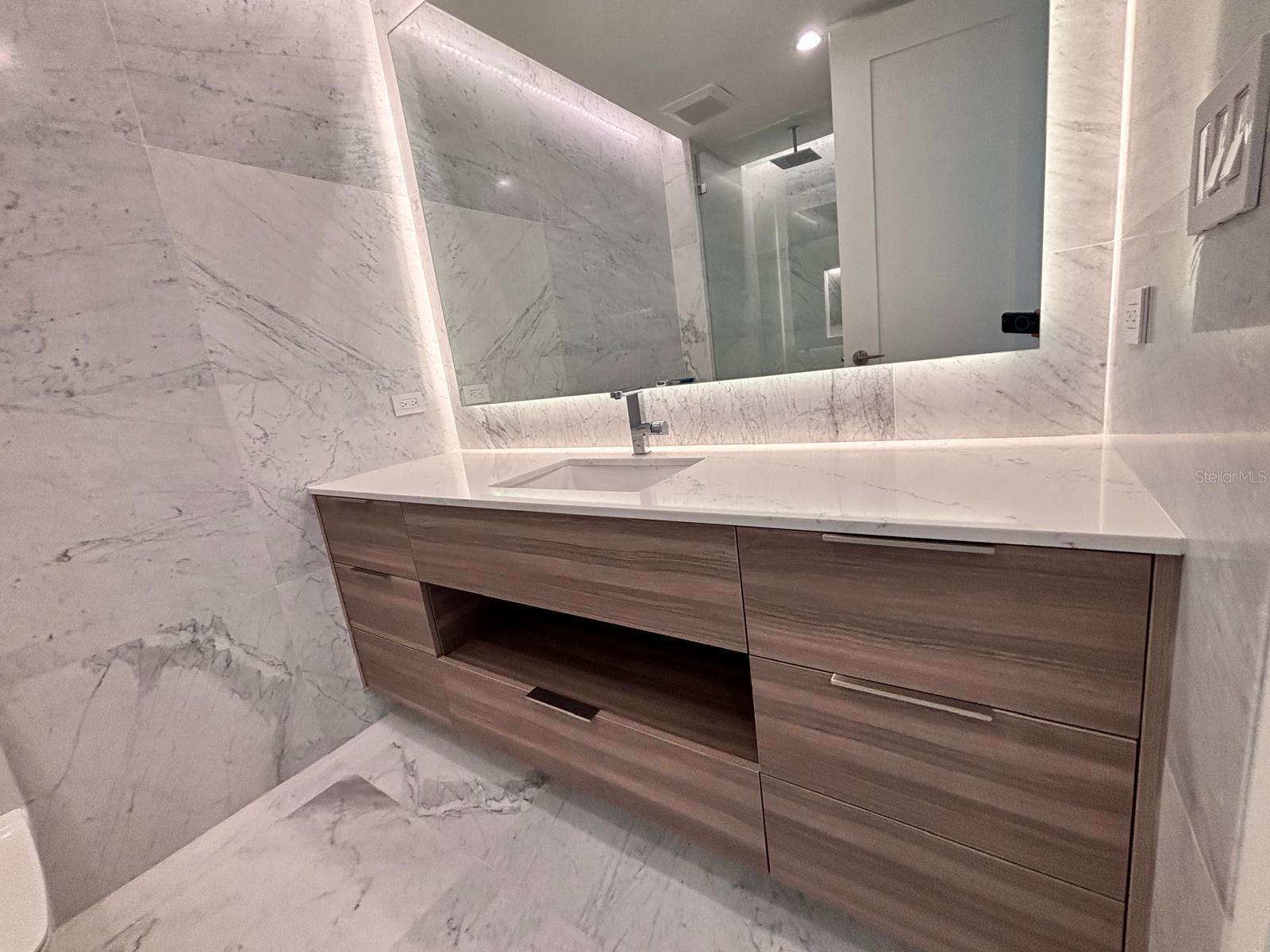 The laundry area has been thoughtfully designed with built-in countertops and a utility sink, adding convenience and practicality without compromising style. Once completed, the apartment will feature a Sonos sound system installed in all bedrooms and the primary bathroom, creating an immersive audio experience throughout the residence. Additionally, custom furniture from Restoration Hardware is currently on order, further elevating the sophistication and comfort of the space.