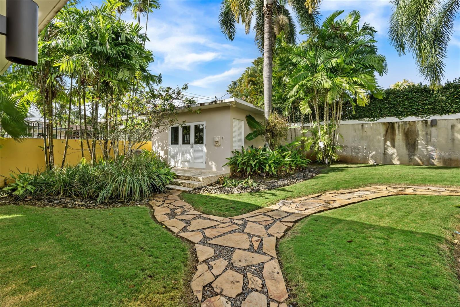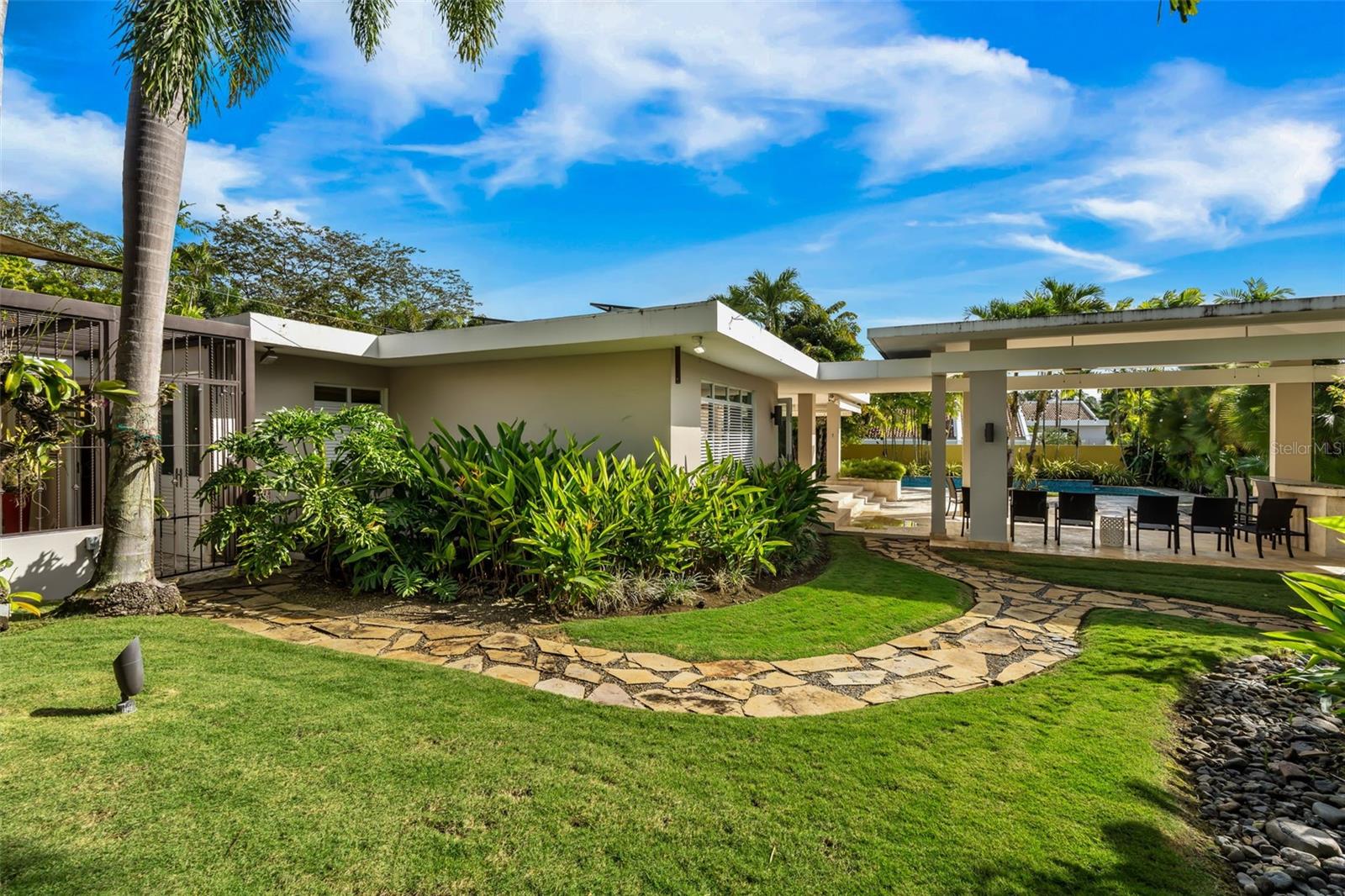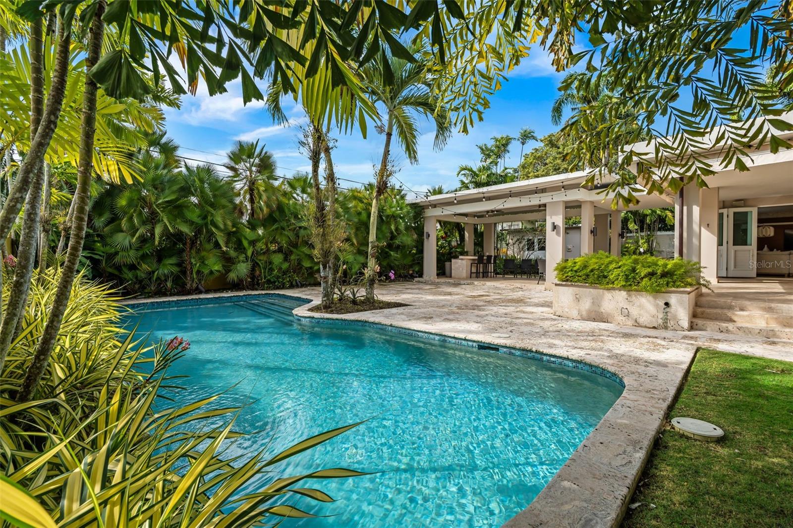 Upon entry, the brilliance of the marble floors reflects the abundant natural light guiding your view toward the breathtaking backyard. The outdoor area is truly captivating, featuring three terraces, a swimming pool, a small basketball court, and an additional detached structure complete with a full bathroom and shower; ideal for a home office, studio, guest suite, or flexible living space.