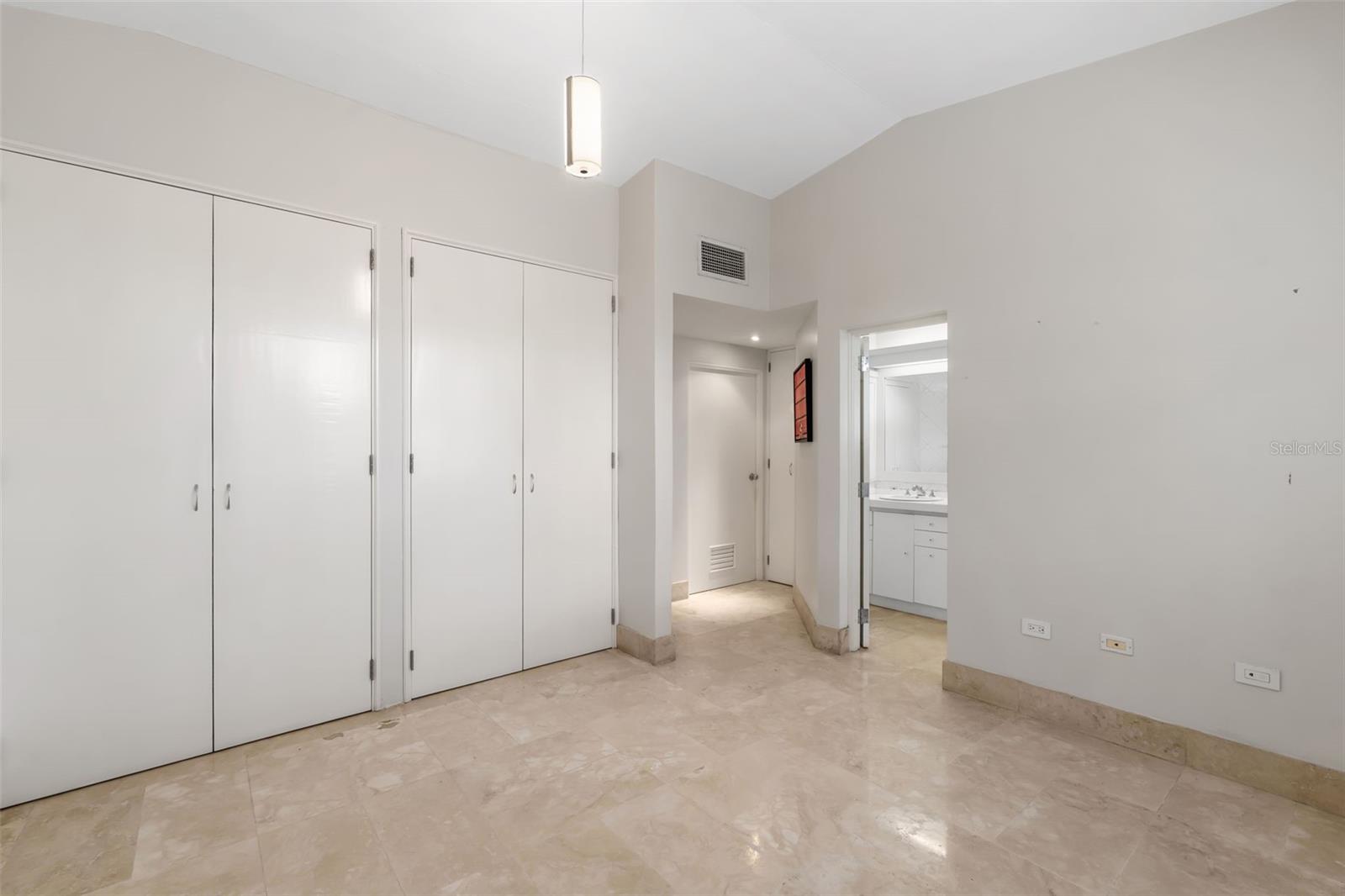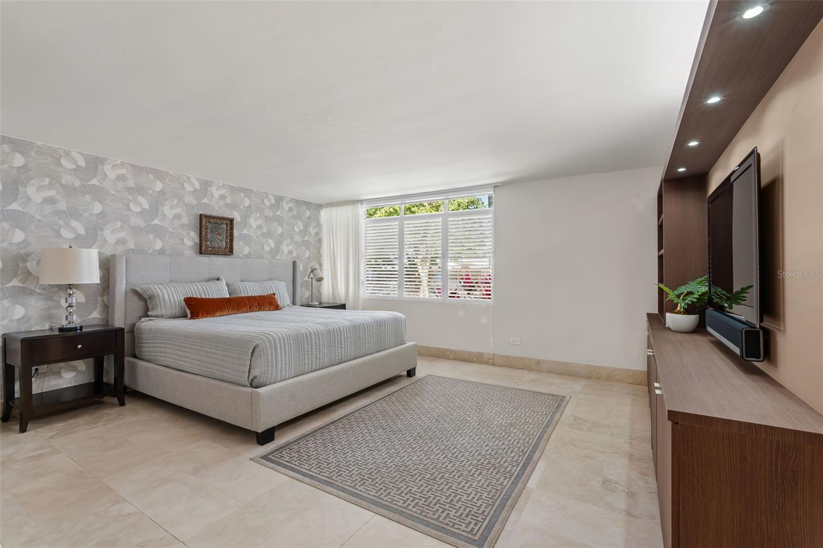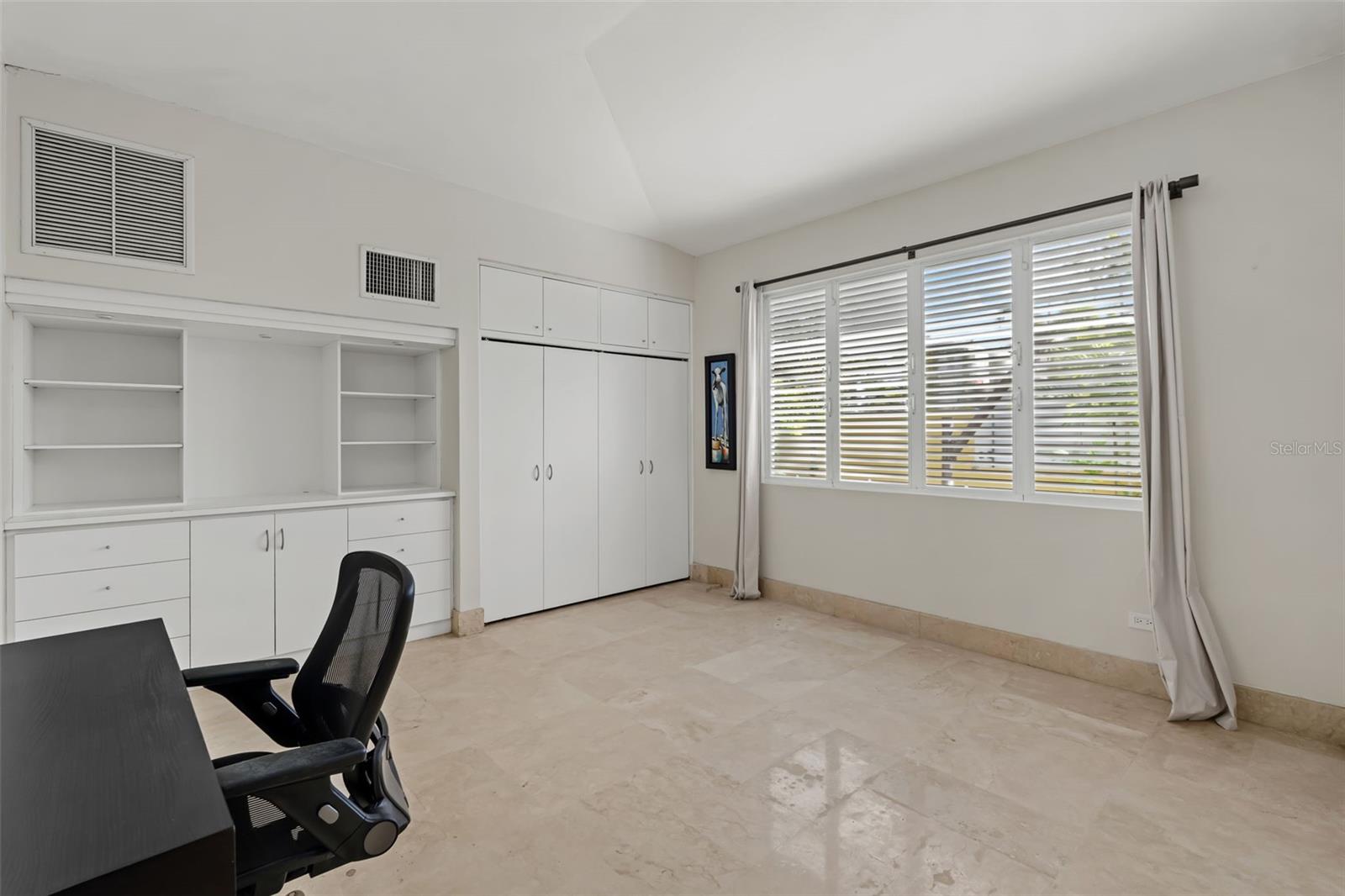 The residence offers four bedrooms and a thoughtfully designed layout. As you enter the bedroom wing, you’ll find a convenient office area. The first bedroom is an en-suite, followed by two additional bedrooms—one with direct access to the hallway bathroom. The master bedroom is a private retreat featuring a spacious walk-in closet, a modern open shower, and a separate, independent bathroom.