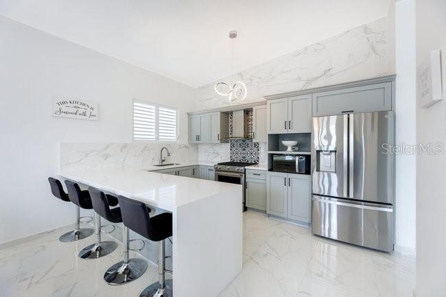 Step inside to find a beautifully remodeled interior featuring an open-concept kitchen, living, and dining area—perfect for entertaining or spending quality time with family and friends. The kitchen shines with brand-new cabinetry, modern appliances, and stylish tile flooring that flows throughout the entire home.