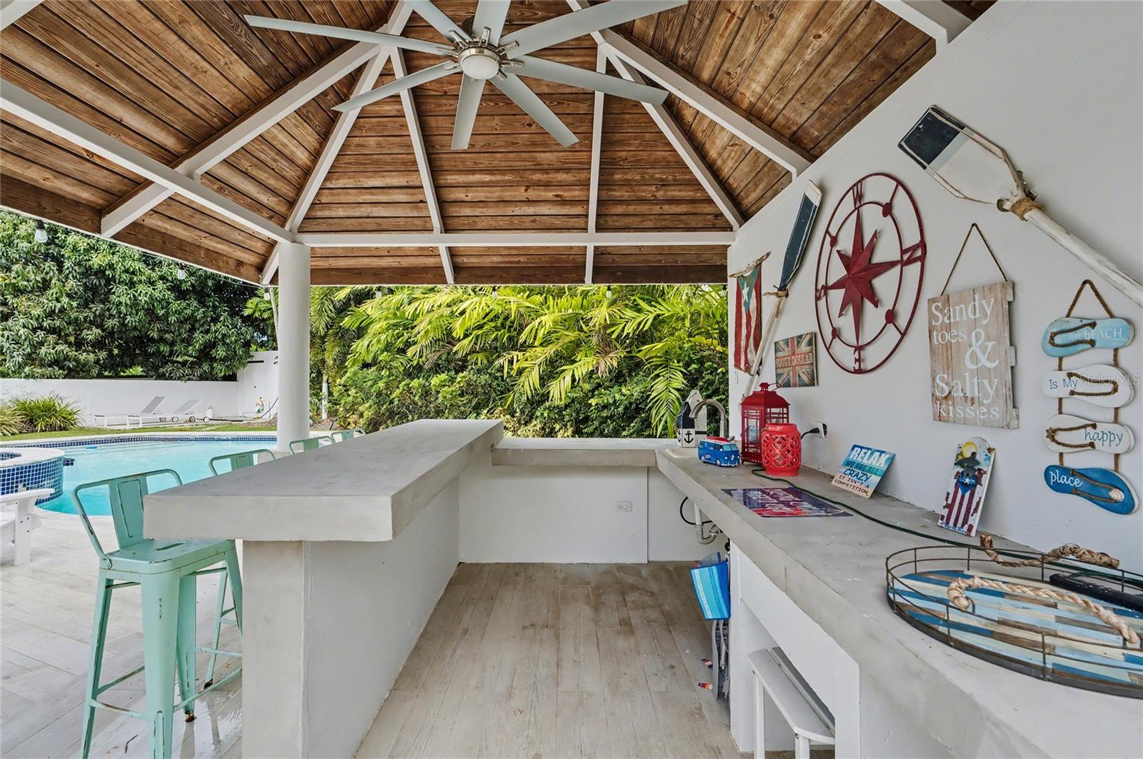 Additional DetailsInteriorTotal Bedrooms 5 Full Bathrooms 7 Half Bathrooms 1 Laundry Laundry Room Flooring Travertine Appliances Built-In Oven, Cooktop, Dishwasher, Dryer, Freezer, Microwave, Refrigerator, Solar Hot Water, Washer, Water Filtration System Other Interior Features Cathedral Ceiling(s), Ceiling Fans(s), Eat-in Kitchen, Kitchen/Family Room Combo, PrimaryBedroom Upstairs, Stone Counters, Walk-In Closet(s), Wet Bar, Window Treatments ExteriorConstruction Materials Concrete Garage Space 5 Heating Electric Cooling Mini-Split Unit(s), Zoned HOA Amenities Gated, Park, Playground, Recreation Facilities, Security, Tennis Court(s) Other Exterior Features Garden, Hurricane Shutters, Outdoor Grill, Outdoor Shower, Private Entrance, Private Mailbox, Storage RoomsFirst Floor Kitchen, Great Room, Dining Room, Bedroom 5, Gym, Family Room Second Floor Primary Bedroom, Laundry GeneralGarage Yes Pets Allowed Yes Spa Yes Area and LotLot Size in Acres 0.24 Living Area in SQFT 5350 Architectural Style Contemporary Utilities Electricity Connected, Fiber Optics Community Features Clubhouse, Gated Community - Guard, Park, Playground, Tennis Court(s) FinancialAnnual Tax $6,395 HOA Fees $238 Location