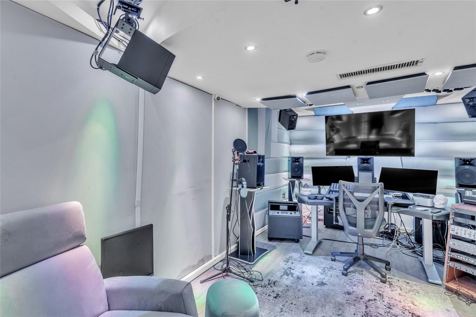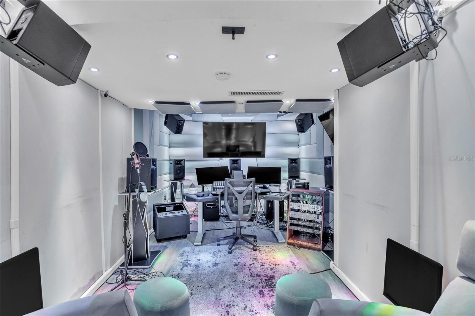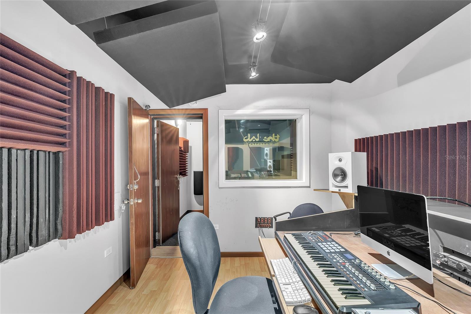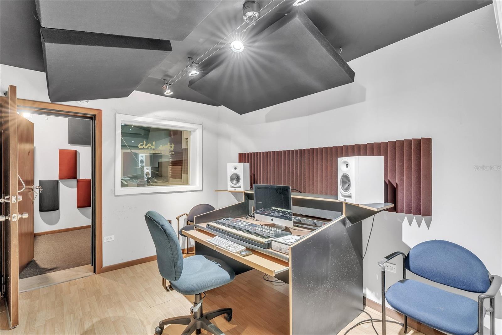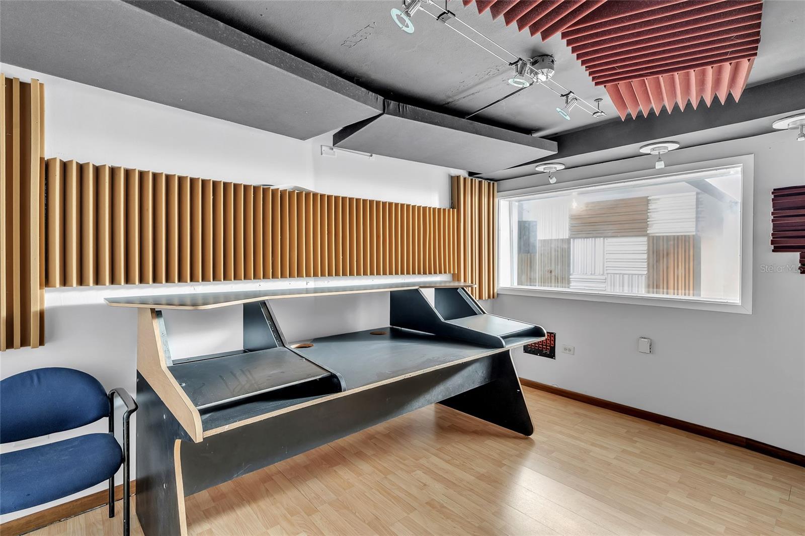 The second level consists in one residential unit. It access is through stairs located to the right side of the building. It is divided in a family room, kitchen, living room, a bedroom and two bathrooms. Its total construction has several sound proof acoustic rooms previously used as recording studio, which could be used as offices. Its total construction area is 1,797 square feet. 11 parking spaces .