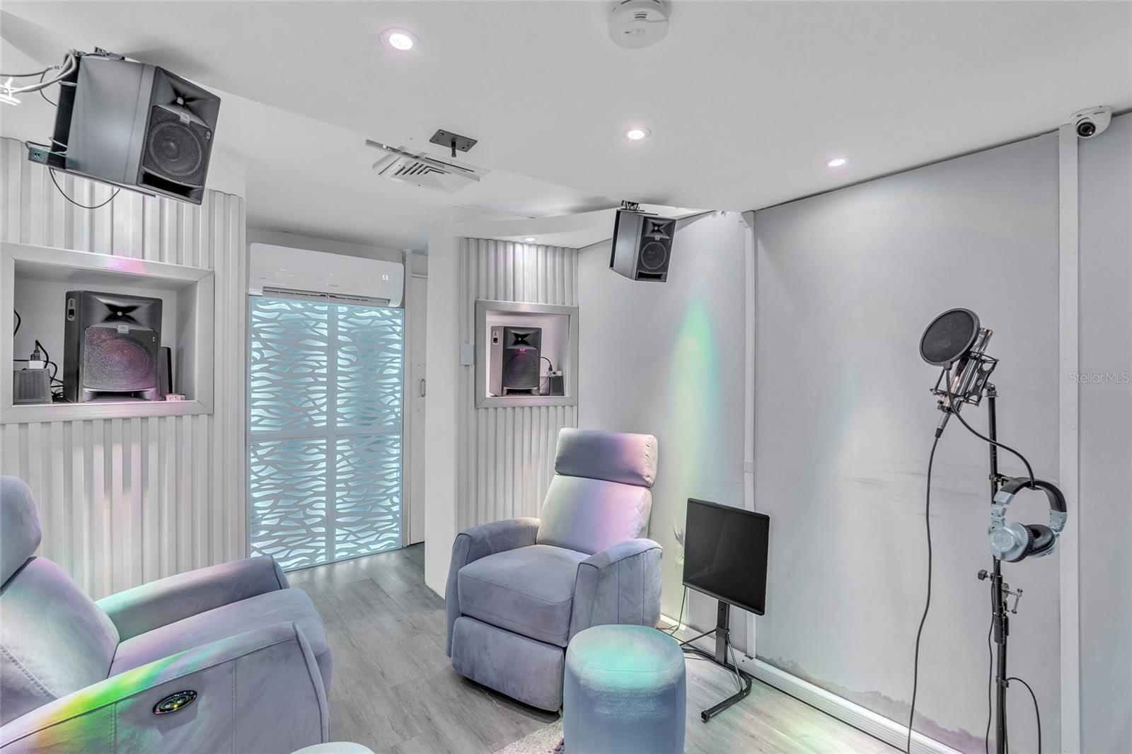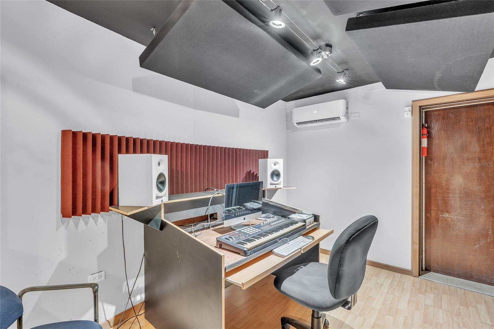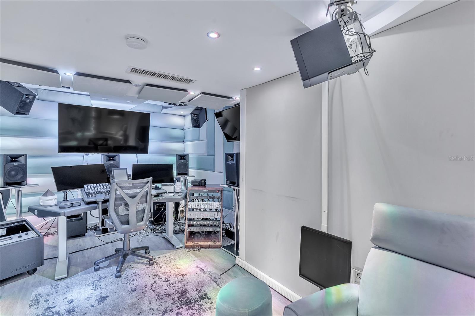 The second level consists in one residential unit. It access is through stairs located to the right side of the building. It is divided in a family room, kitchen, living room, a bedroom and two bathrooms. Its total construction has several sound proof acoustic rooms previously used as recording studio, which could be used as offices. Its total construction area is 1,797 square feet. 11 parking spaces .