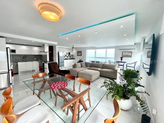 One of a Kind apartment. Ocean front , super spacious , completely remodeled , equipped and furnished with a very good taste. Beautiful ceilings jobs in kitchen and living areas. Includes closed balcony area, big living/dining area, kitchen, dry bar, laundry room , office , studio / dresser room, one guest bedroom , one super spacious primary bedroom that has a balcony and walking closet. Both bathrooms are very ample and confortable with a lot of extra space. All kitchen appliances are stainless steel. The property has 2200 square feet approximately and includes two parking spaces , 24 hours security, swimming poll, direct access to the Isla Verde Beach consider as one of the best metropolitan beaches in the world. Excellent location across the street to supermarket and walking distance to several restaurants. Easy access to the 26 highway. Must see!!