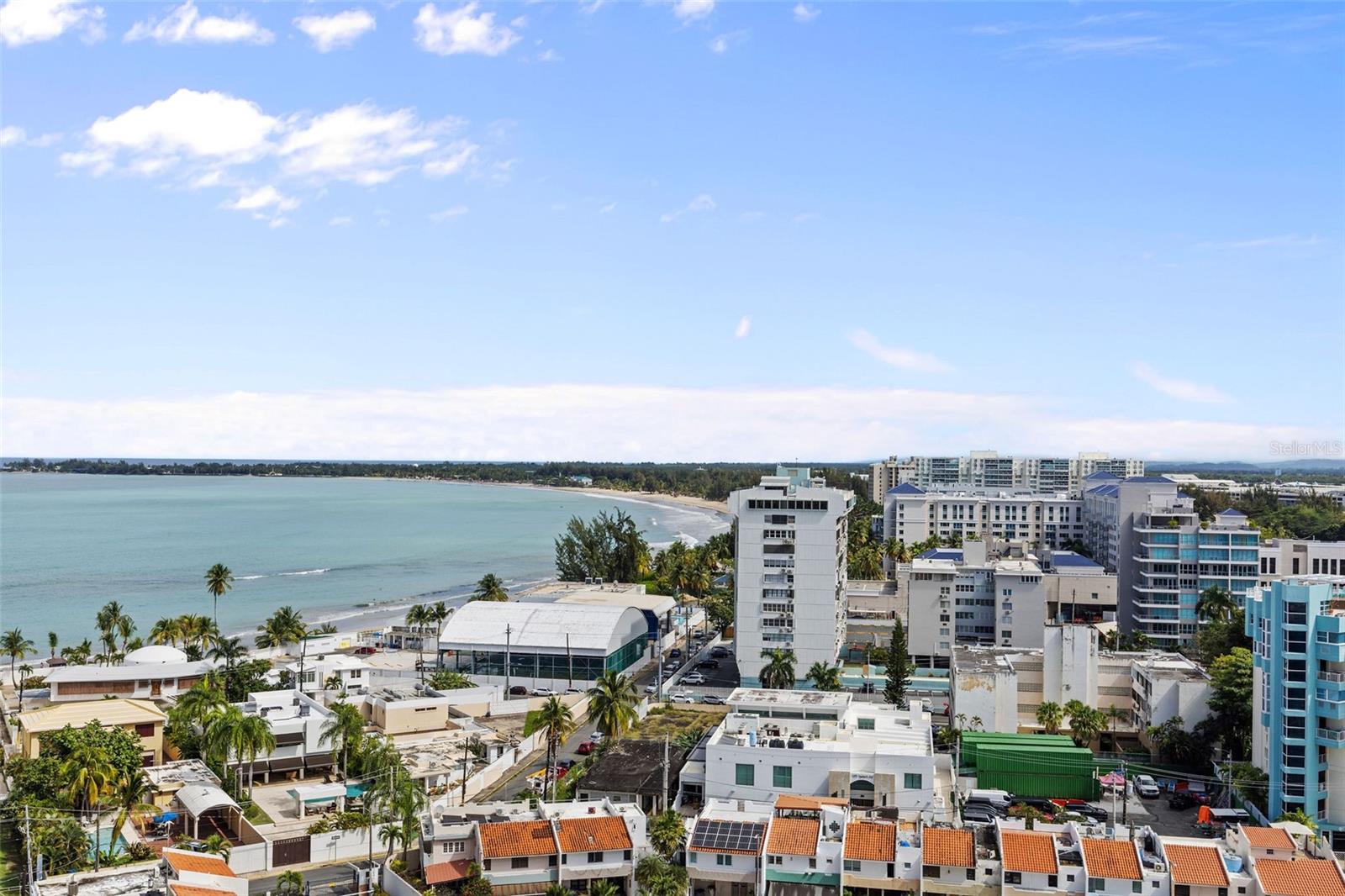 Continue straight along Avenida Isla Verde; ESJ Towers will be on the right, near the beachfront.