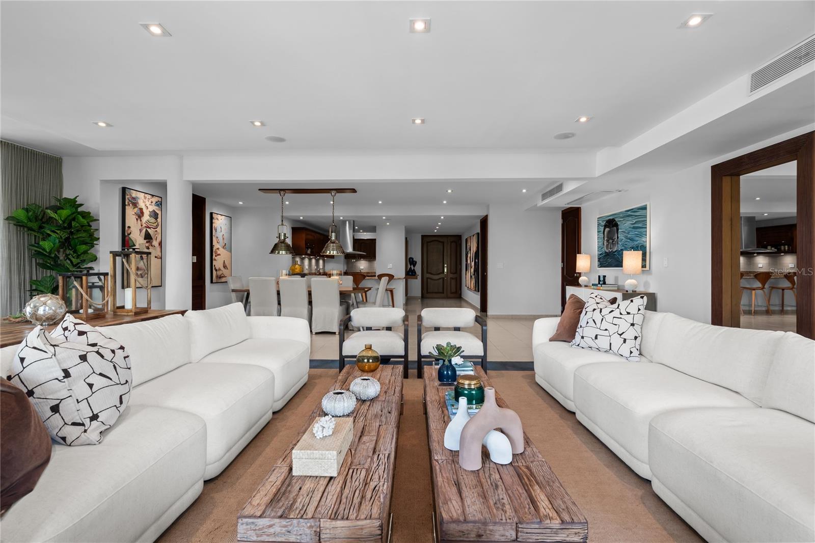 Elegant 280 m² residence located in the exclusive oceanfront community of Plaza del Mar Norte in Palmas del Mar. This apartment features an open and spacious layout that includes a living room, dining area, and family room, along with a modern kitchen and laundry area. It offers four bedrooms, including a primary suite with a walk-in closet and private bathroom, plus 3.5 bathrooms in total.