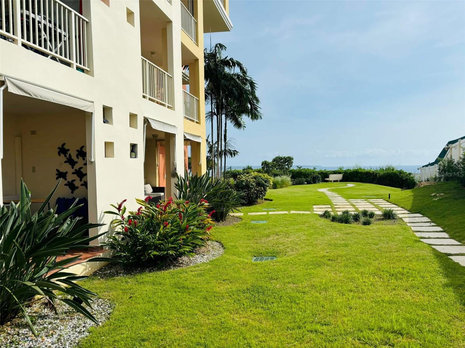 Private patio with partial ocean views