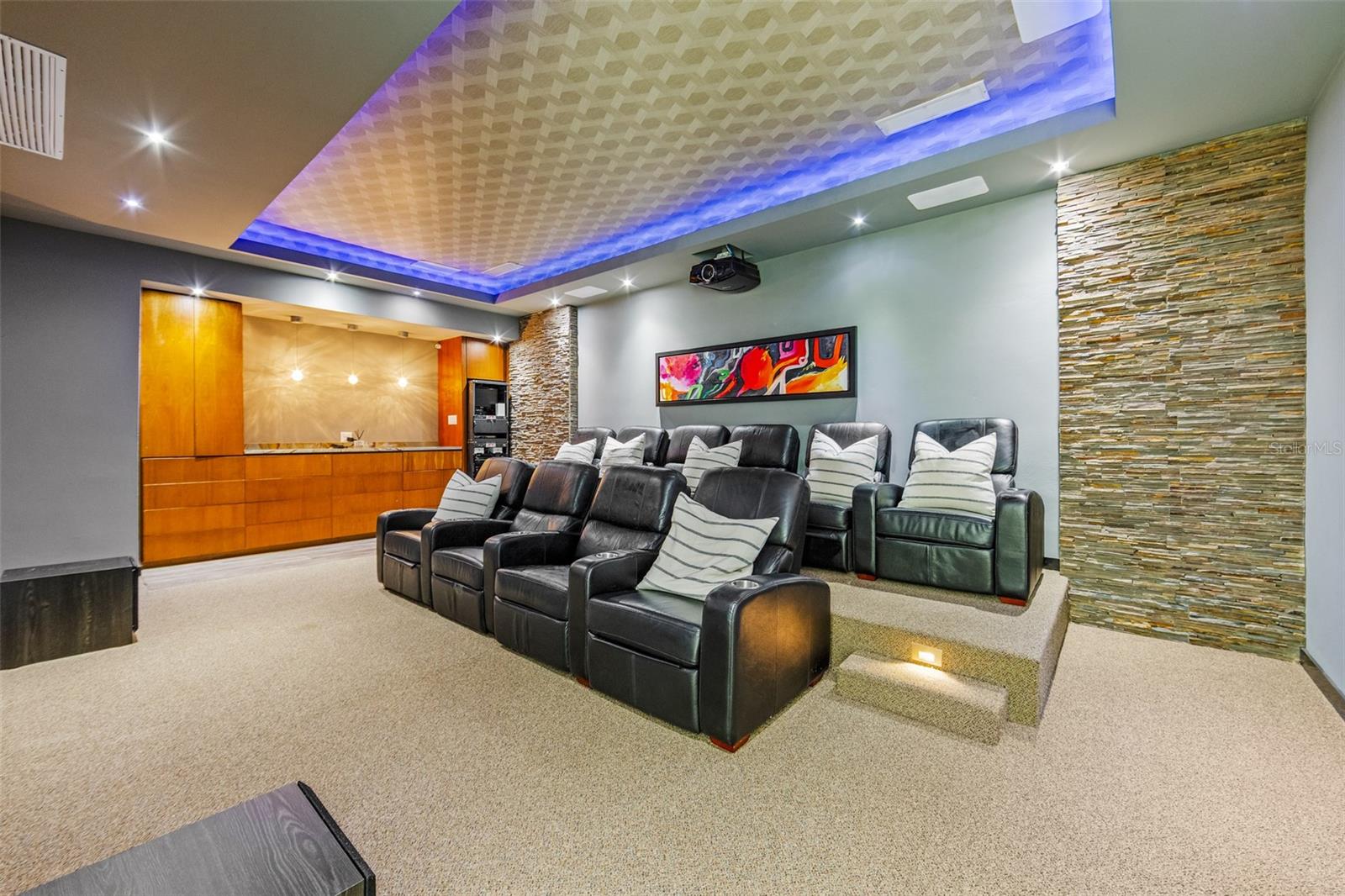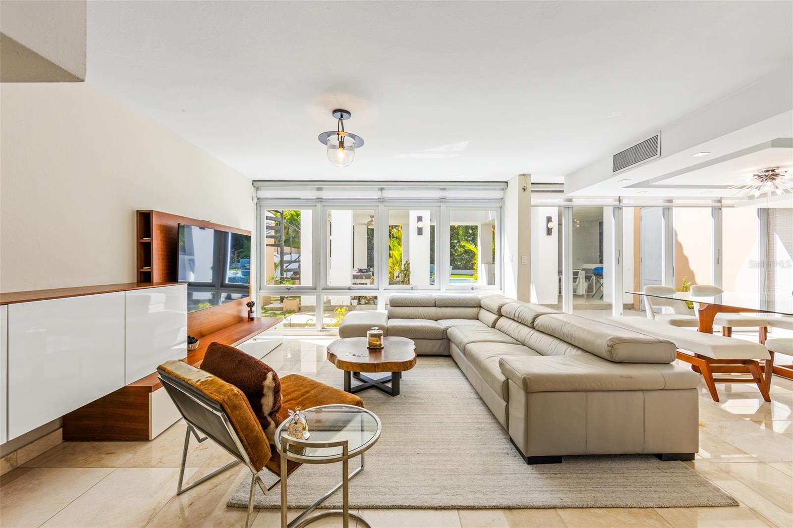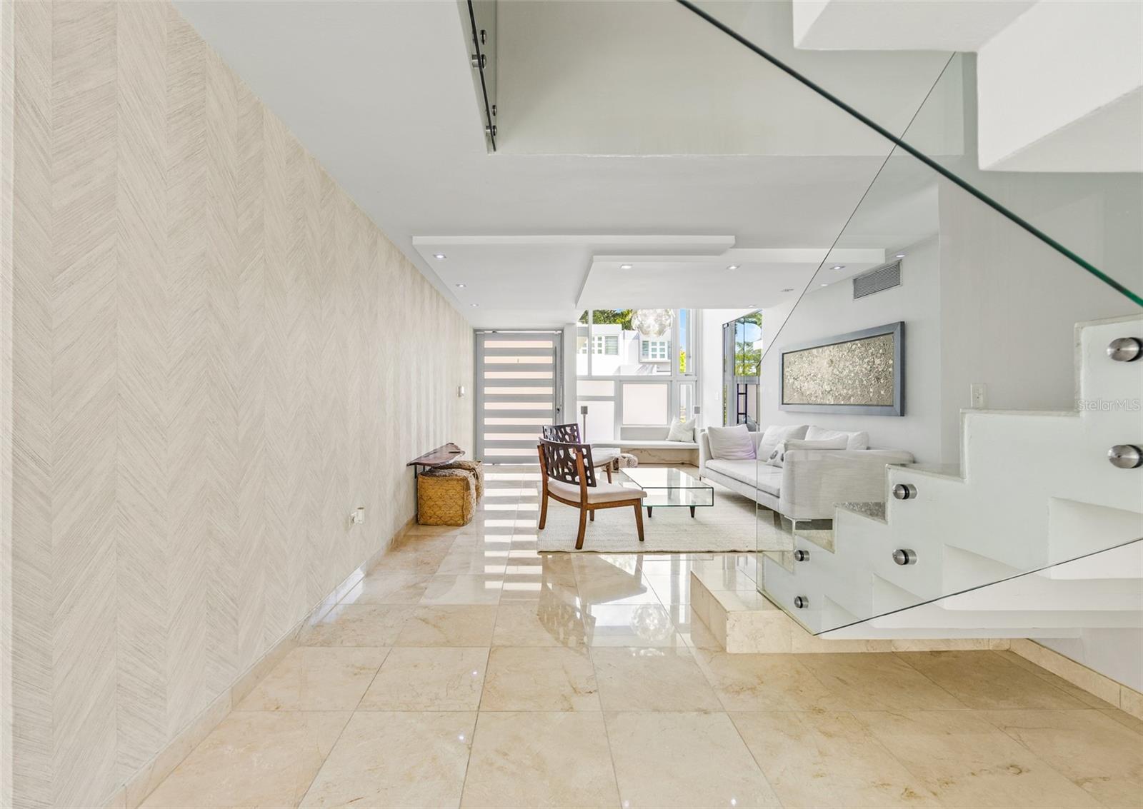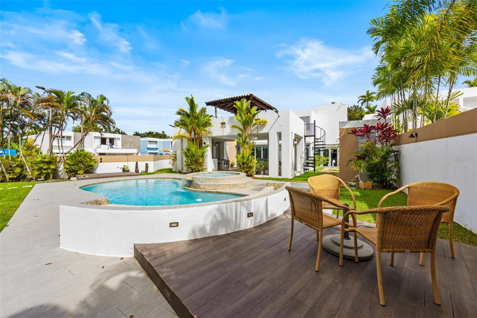 Luxury corner residence in El Mirador, San Juan. Fully remodeled and expanded with modern design and excellent spaces for entertaining. 3,714 sq ft of construction on a 1,100 sq meter lot. Features a swimming pool with jacuzzi and private backyard, outdoor entertainment area with kitchen and BBQ, plus a second-floor terrace overlooking the patio. Private home theater with seating and sound system. Remodeled kitchen (2022) with Bosch dishwasher, wine cooler, and porcelain countertops. Climate-controlled wine cellar and marble floors throughout. Offers 4 bedrooms and 5 bathrooms, including a Junior Suite with en-suite bath and walk-in closet, and an expanded primary suite with luxury bathroom and two walk-in closets. Equipped with 20kW generator, 600-gallon water cistern, gym area with office, and electric hurricane shutters.