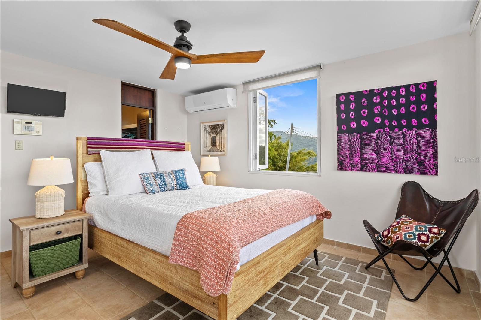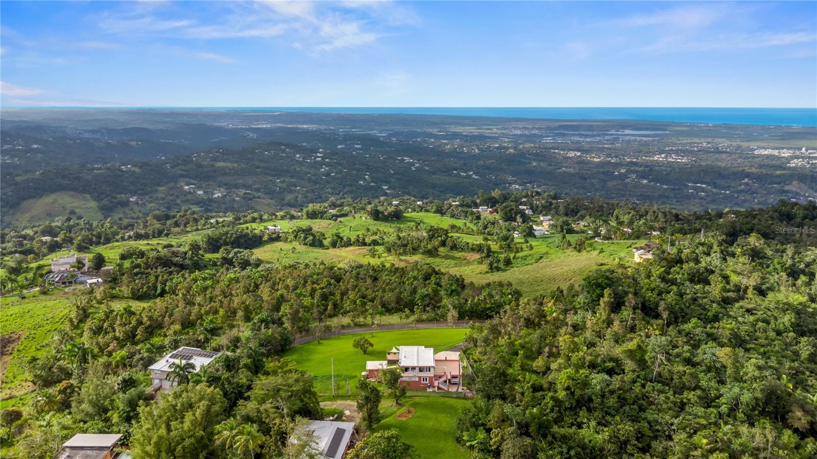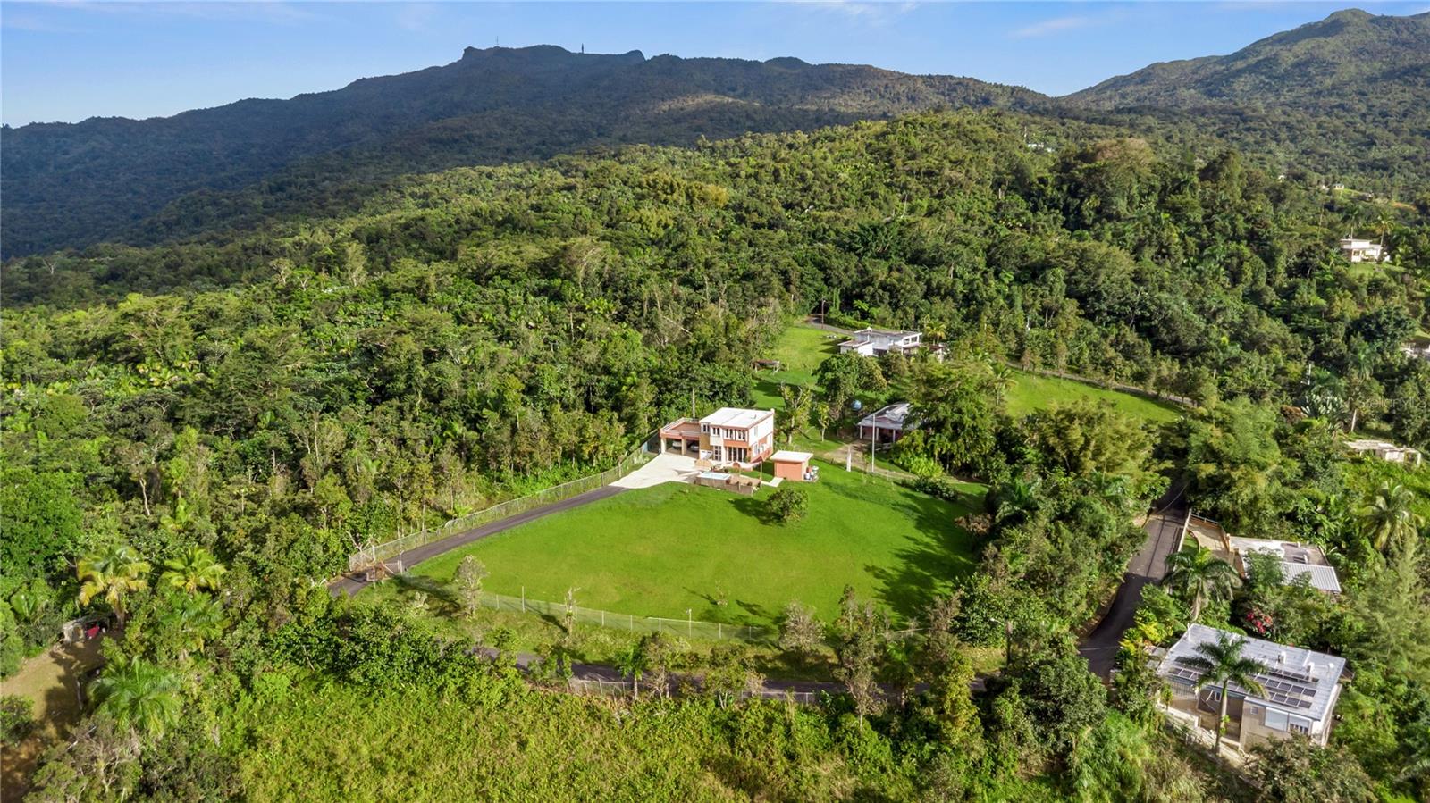 "The Sky House" is situated within a private, gated community, offering over one acre (4,126 square meters) of carefully maintained grounds that ensure privacy and security. The residence, featuring three bedrooms and two-and-a-half bathrooms, is adjacent to El Yunque Rain Forest and provides sweeping, unobstructed views across the Atlantic Ocean, mountains, valleys, and San Juan city. Despite its tranquil and secluded setting, the property is conveniently located only 30 minutes from SJU Airport and San Juan.