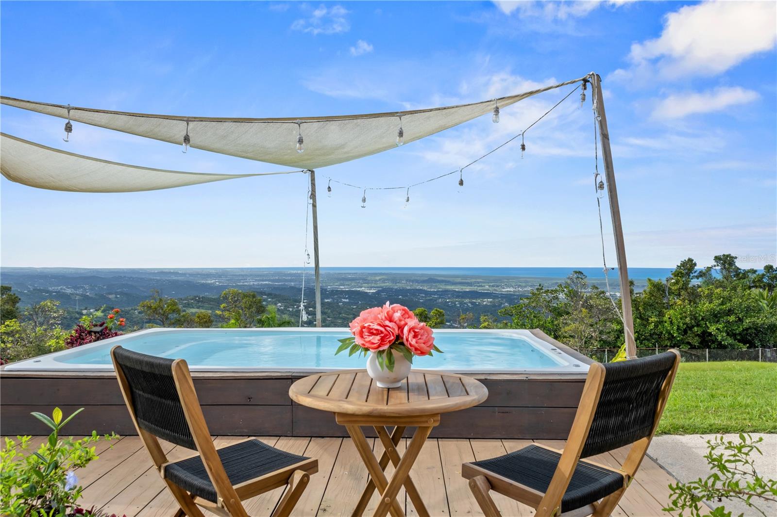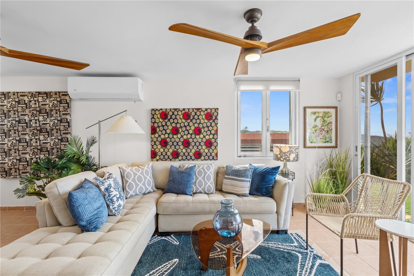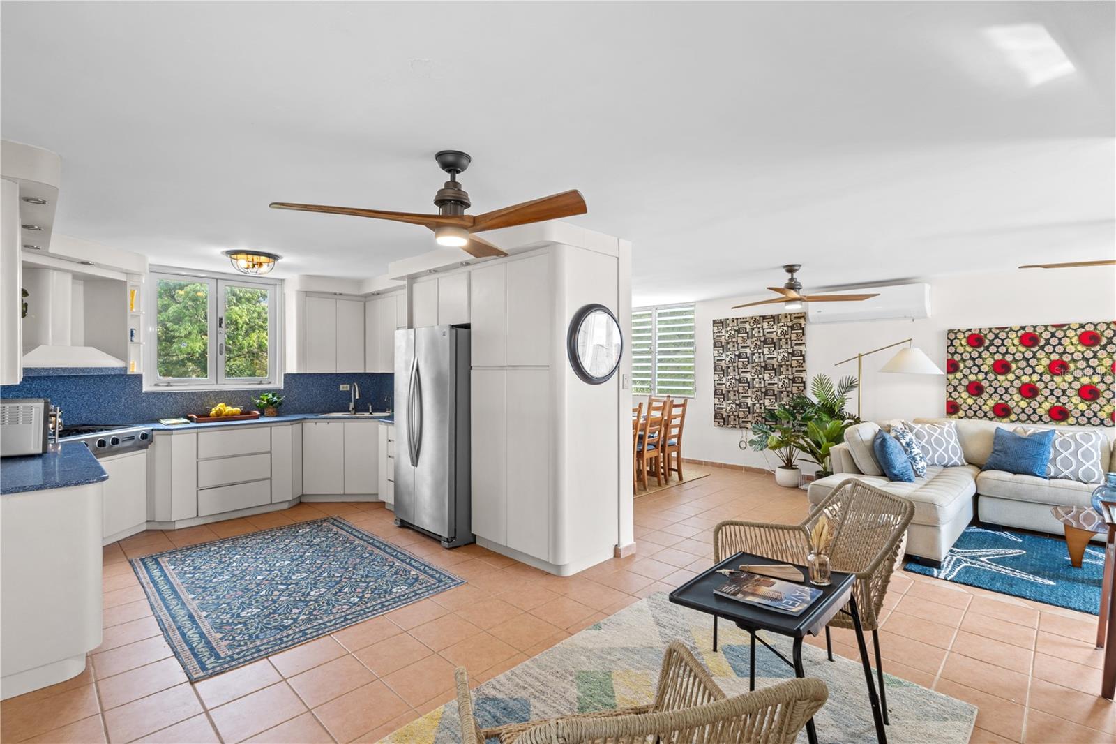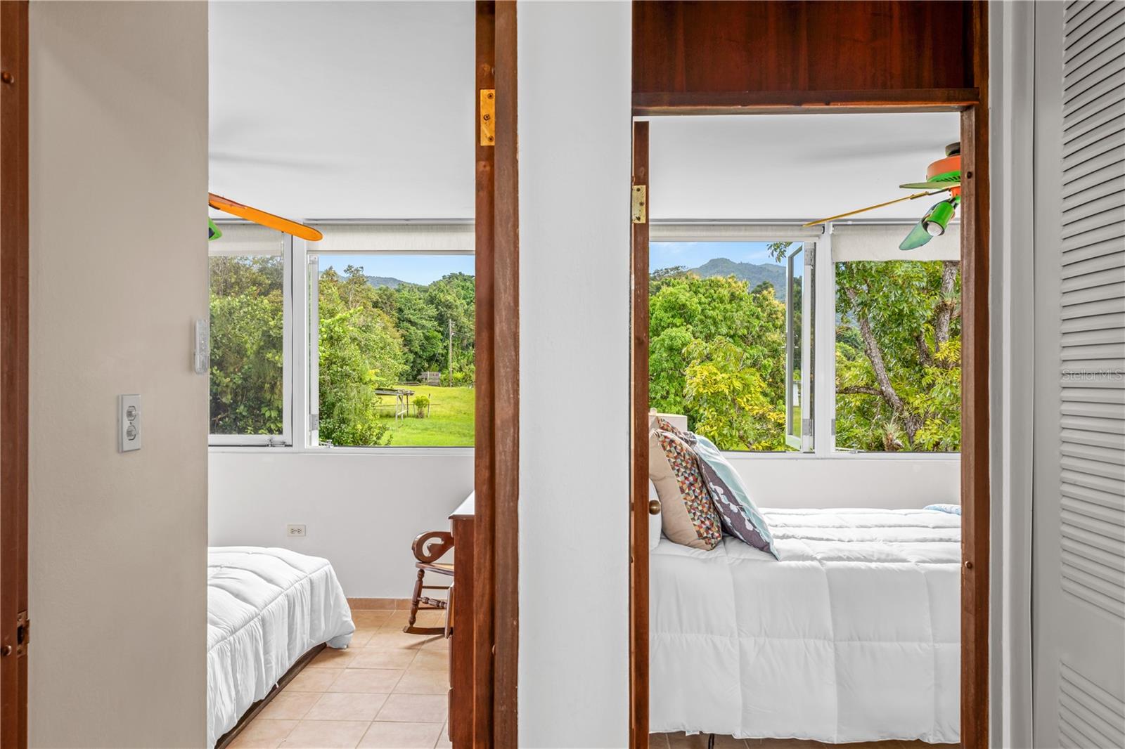 "The Sky House" is situated within a private, gated community, offering over one acre (4,126 square meters) of carefully maintained grounds that ensure privacy and security. The residence, featuring three bedrooms and two-and-a-half bathrooms, is adjacent to El Yunque Rain Forest and provides sweeping, unobstructed views across the Atlantic Ocean, mountains, valleys, and San Juan city. Despite its tranquil and secluded setting, the property is conveniently located only 30 minutes from SJU Airport and San Juan.