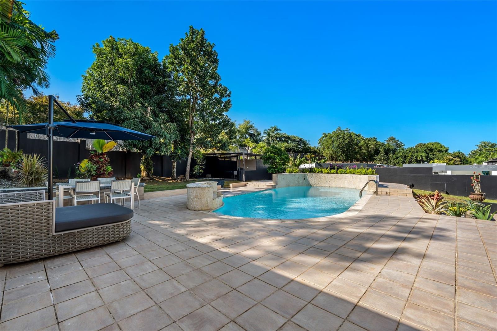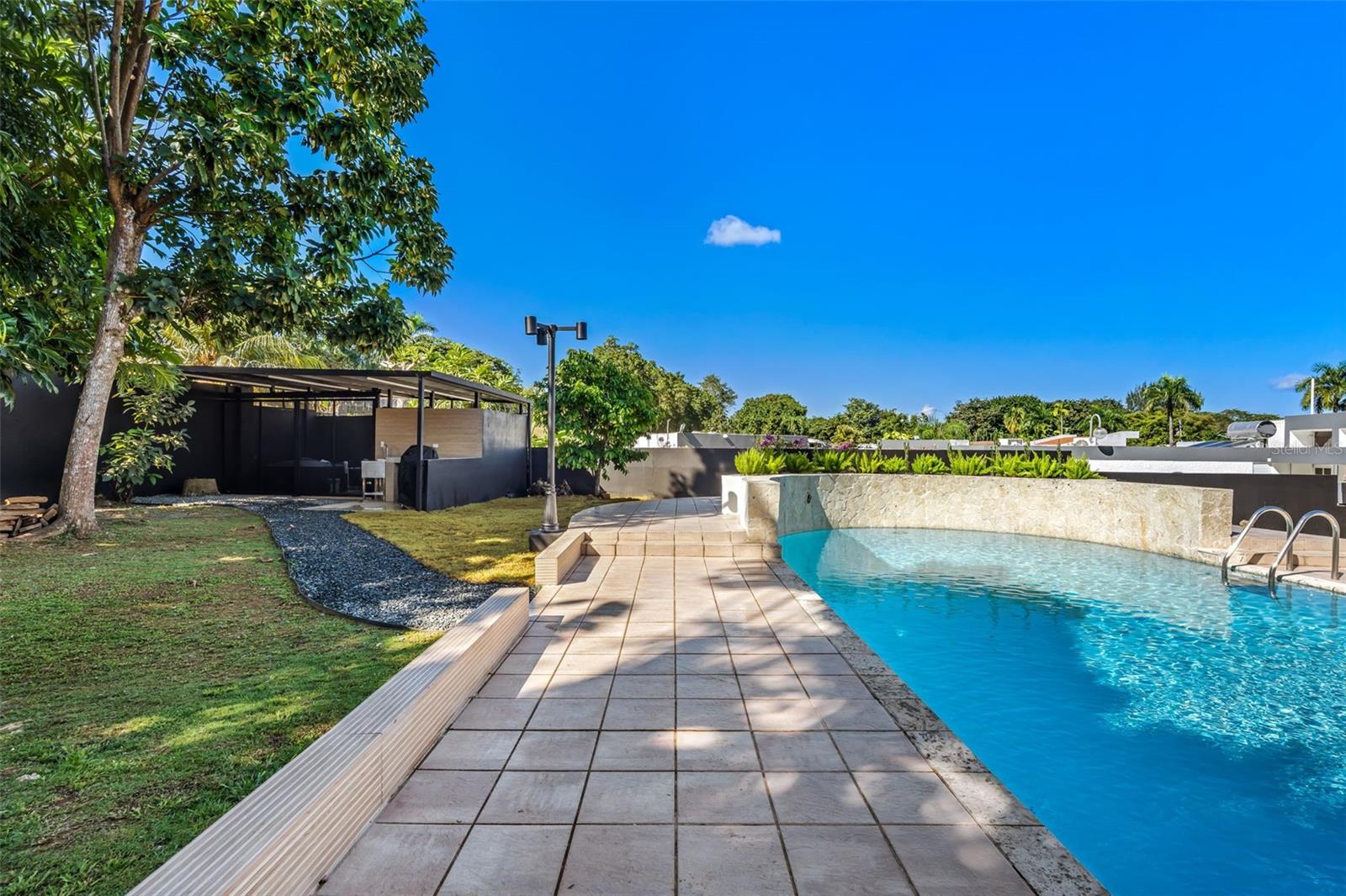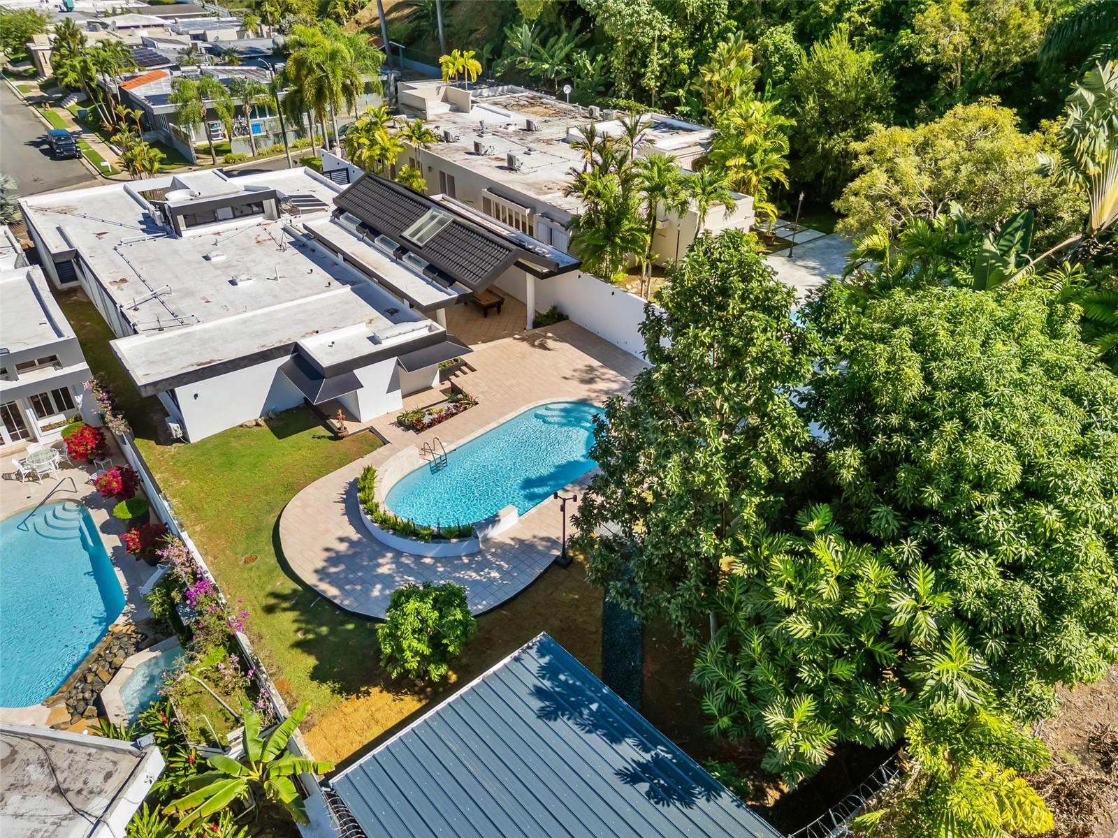 Take PR-22 West from San Juan toward Guaynabo. At kilometer 5.5, take the left exit for Buchanan and merge onto PR-2. Continue on PR-2 for approximately 1.7 kilometers, then turn right onto PR-20 toward Guaynabo. Drive south on PR-20 for about 280 meters and take the exit on the right toward Avenida González Giusti. At the intersection, turn right onto Avenida González Giusti and continue for about 210 meters. Enter the roundabout and take the southbound exit onto PR-19. Continue for approximately 500 meters, then turn right into the main entrance of Garden Hills Sur. Continue straight on Calle Del Parque for about 700 meters, then turn left onto Calle Serranía. Drive approximately 300 meters and turn left onto Calle Garden Hills Estates. After passing the gate, turn right onto Calle 2 and immediately left onto Calle 3. The property is the second to last house on the right.