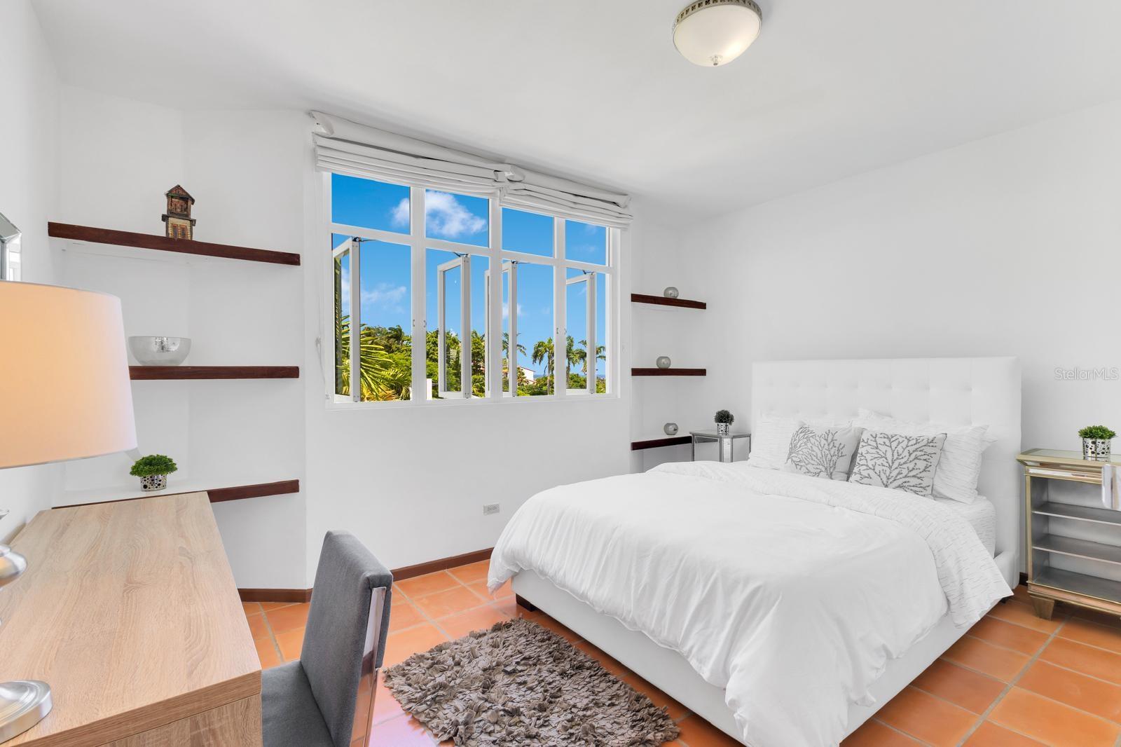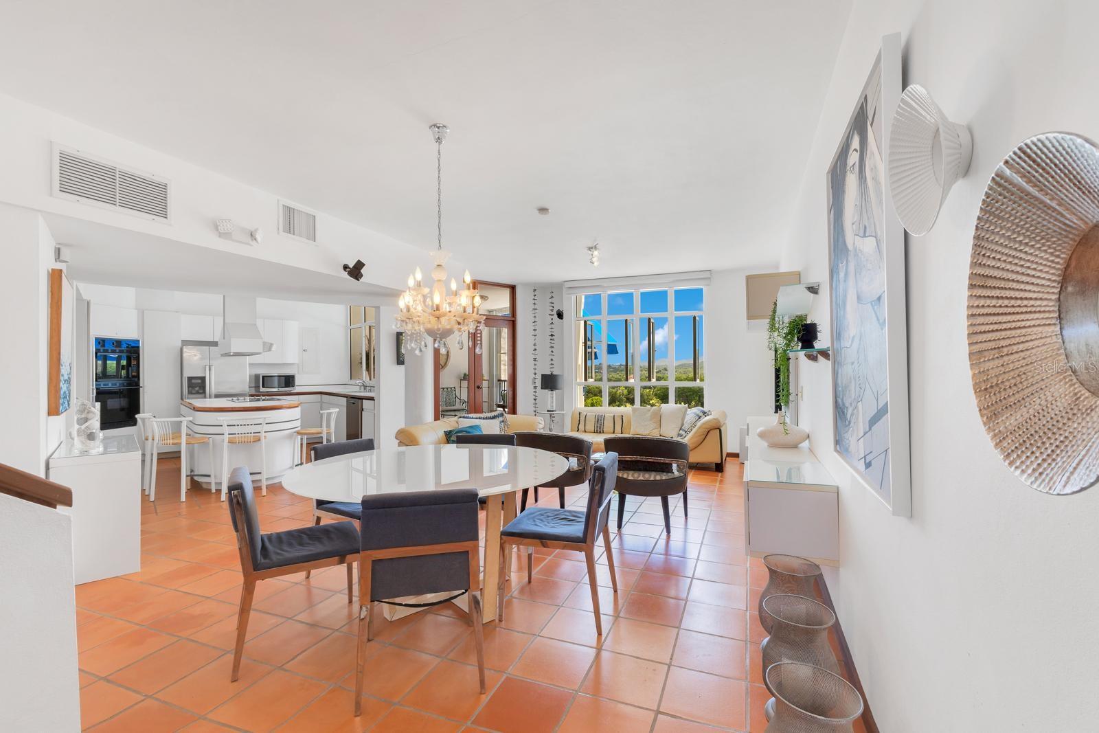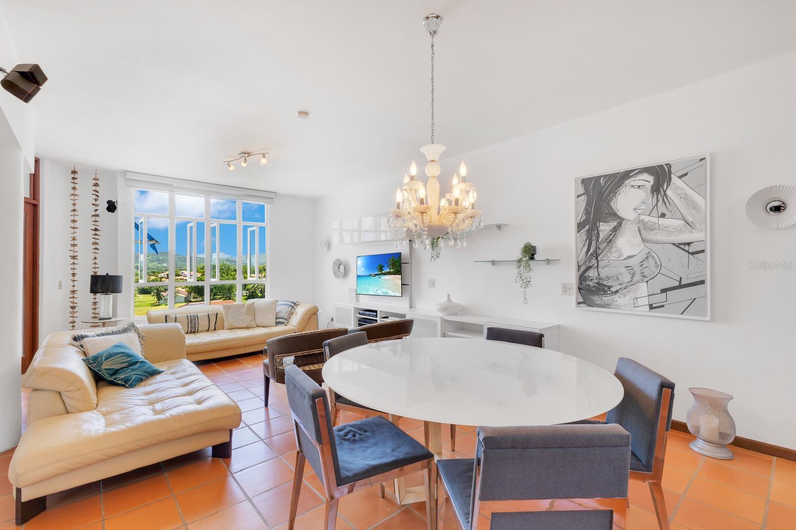 The main level features an open-concept kitchen, dining, and living area that flows out to a balcony with relaxing views of the golf course, El Yunque rainforest, and the Wyndham Rio Mar resort grounds. An equipped laundry space and storage closet add everyday convenience, while 2 inverter A/C units and 1 central A/C system keep the villa cool and efficient.