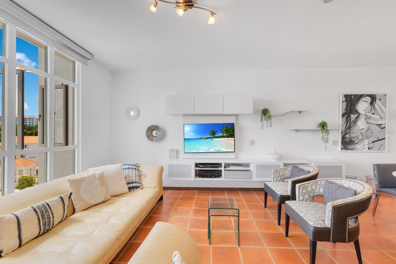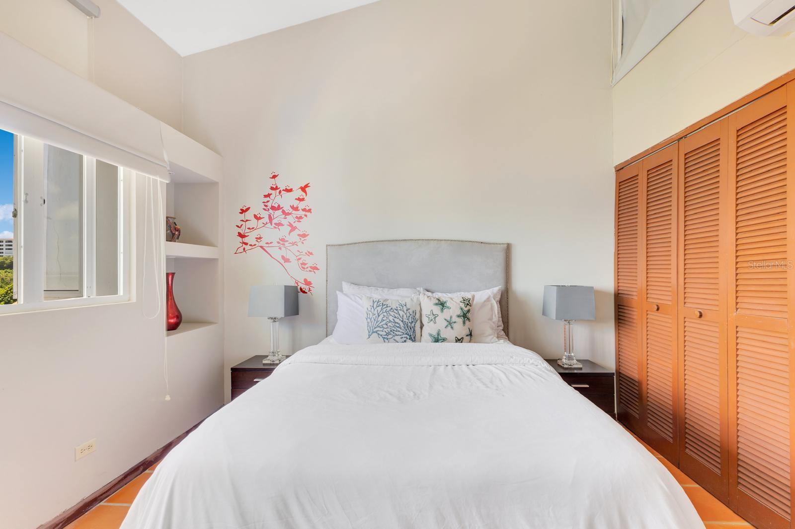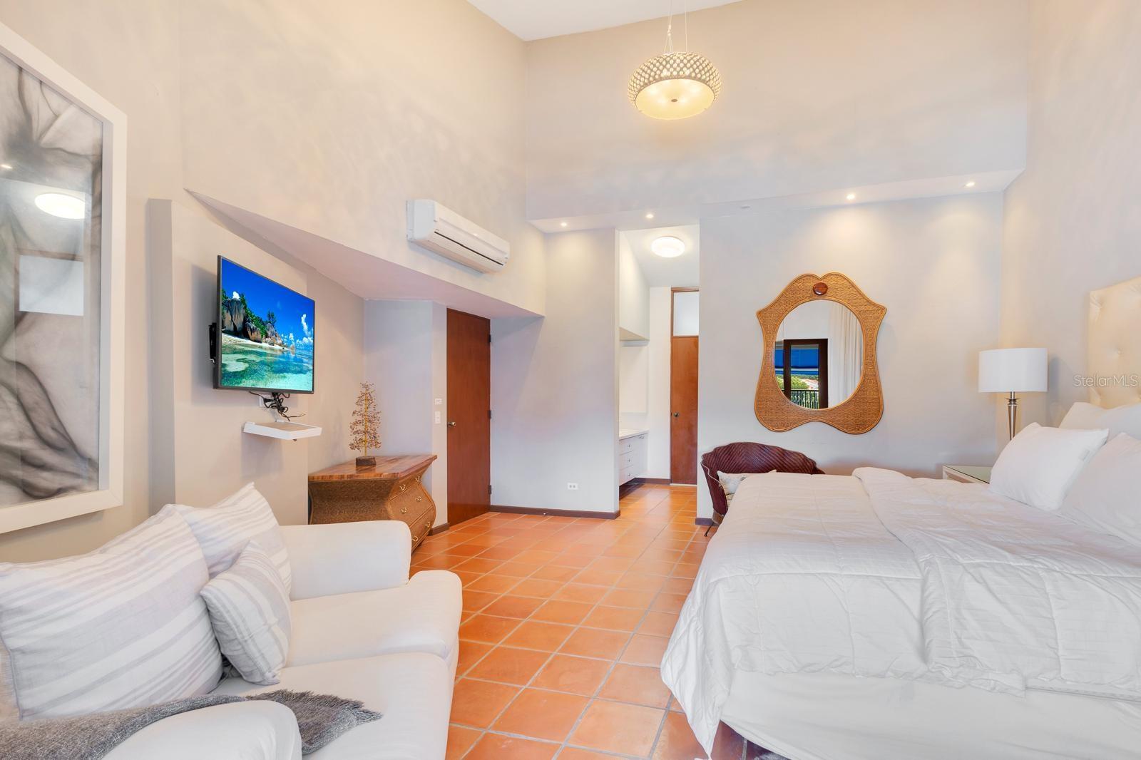 The main level features an open-concept kitchen, dining, and living area that flows out to a balcony with relaxing views of the golf course, El Yunque rainforest, and the Wyndham Rio Mar resort grounds. An equipped laundry space and storage closet add everyday convenience, while 2 inverter A/C units and 1 central A/C system keep the villa cool and efficient.