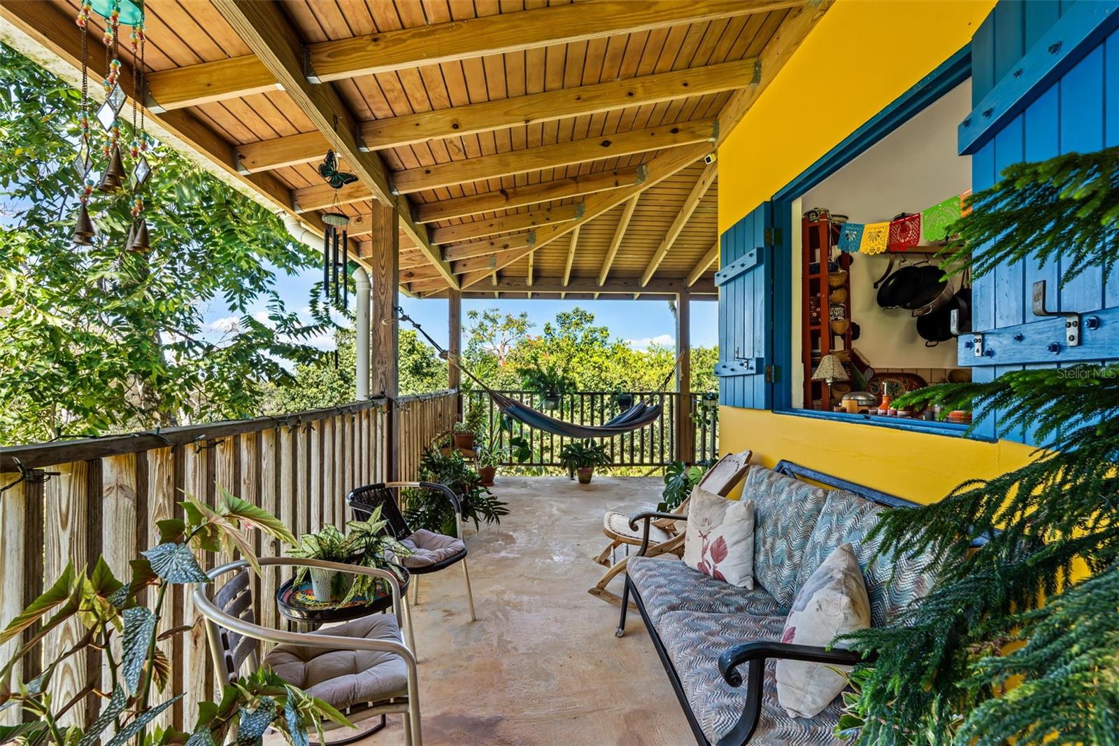 The home offers approximately 1,456 square feet of interior living space, complemented by an additional 912 square feet of treated wood terraces and wraparound balconies, creating a functional extension between indoor and outdoor areas.