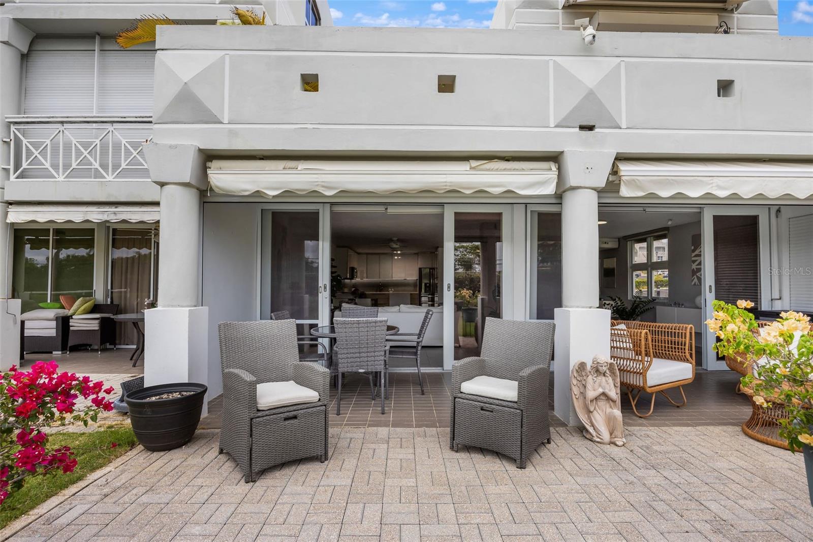 Welcome to your private sanctuary where Caribbean luxury meets resort living in one of Dorado's most coveted addresses. This completely renovated three-bedroom, two-and-a-half-bath end-unit condo represents the pinnacle of island sophistication, where every detail has been meticulously curated to deliver an uncompromising lifestyle of elegance and ease. Step inside this two-story masterpiece and immediately sense the difference. This isn't just another renovation—this is a complete transformation executed with no expense spared. From the moment you cross the threshold, premium finishes surround you: exquisite flooring that flows seamlessly throughout, custom cabinetry crafted to perfection, designer countertops that make a statement, top-of-the-line appliances that blend beauty with performance, and impact windows that frame your paradise views while providing peace of mind. Every surface, every fixture, every finish reflects uncompromising quality. The heart of this home is its spectacular open floor plan, designed for the way you want to live. Natural light pours through expansive windows, illuminating spaces that flow effortlessly from entertaining areas to intimate retreats. Your private patio becomes your personal oasis—imagine savoring the gentle Caribbean breeze while overlooking the pristine golf course, the perfect backdrop for morning meditation or evening cocktails. Start your day on the front terrace with freshly brewed coffee, planning your paradise agenda. Ascend to the primary suite where a generous balcony reveals breathtaking mountain vistas, your private perch for watching sunsets paint the peaks. The top guest bedroom offers an unexpected treasure: captivating ocean views that remind you daily why you chose island living. But the true luxury here extends far beyond your front door. Your home sits within the prestigious Embassy Suites Resort community, where world-class amenities create an everyday vacation lifestyle. You're mere footsteps from sugar-sand beaches where palm trees sway in the tropical breeze and waves crash rhythmically against ancient rocks. When you're not enjoying your private residence, explore three distinct on-site restaurants, perfect your swing at the golf course or driving range, compete on pickleball courts, bowl a few frames, try your luck at the casino, challenge friends to billiards, or experience the thrill of the indoor go-kart track. This is resort living without the resort fees—it's simply home. The practical luxuries matter too. A backup generator ensures uninterrupted comfort regardless of weather, while the water cistern provides invaluable peace of mind—essential infrastructure that savvy Caribbean residents appreciate. As a coveted first-floor end unit backing to the golf course, this property offers both convenience and prime positioning. Location completes this exceptional offering. Nestled within an exclusive private gated community, you'll enjoy security, serenity, and the soothing tranquility that defines authentic Caribbean living. Yet you're never isolated—the charming town of Dorado, with its rich cultural tapestry, acclaimed restaurants, and convenient shopping, sits just minutes away. This is more than a property; it's a lifestyle transformation. It's waking to ocean breezes and mountain views. It's walking to dinner or the beach on impulse. It's living where others vacation, in a home where quality meets convenience, luxury embraces livability.
