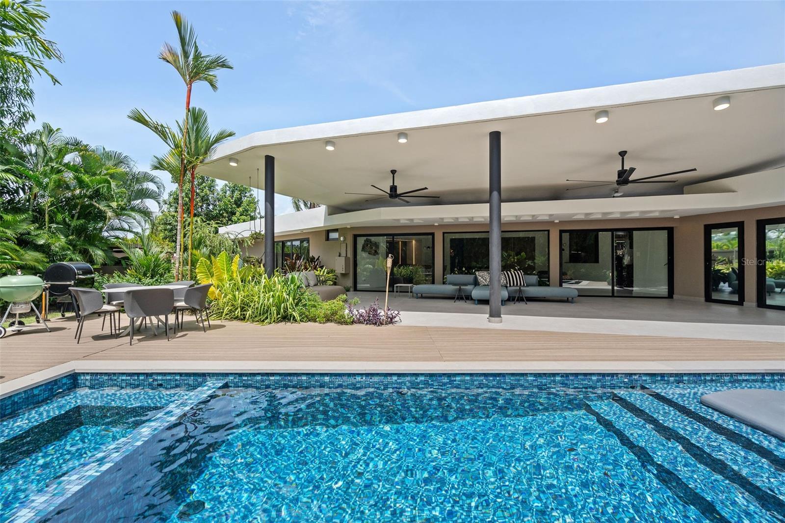 Luxury Home for Sale in Garden Hills North, Guaynabo, Puerto Rico. Discover elegance and modern design in this fully remodeled three-bedrooms, four bathrooms, powder room, office, and flex room. The open-concept layout seamlessly integrates living, dining, family, bar area and kitchen spaces, with expansive windows that fill the home with natural light and providing stunning views of the lush gardens. Designed by Interior Designer Carlos Alegría, every detail reflects a nature-inspired theme, from the custom Copatlife Italian kitchen and bar with Sub-Zero and Wolf appliances to the designer lighting, furnishings and details throughout. All custom-made designer furniture and accessories were carefully selected to follow the colors and theme of every room. The master suite features a spa-like en-suite bathroom, rainfall shower, double vanities, and a walk-in closet designed by California Closets. Additional highlights and spaces include an office room, flex room with three 84 inches wide, 8K TVs, a state-of-the-art technology system, laundry room, and wired internet access points throughout the home. Outside, the meticulously landscaped backyard designed by Mery Bingen provides a heated pool, Jacuzzi, and expansive terrace, perfect for relaxation or entertainment. The pool features bullnose lights and multi-color options, enhancing the vibrant outdoor atmosphere. This property, with a living area of approximately 4,000 square feet and a corner lot size of 1,372 square meters, also includes a power generator and a water cistern for added convenience and security. Located in a peaceful yet convenient neighborhood, the home features additional luxury items like electric curtains, blackouts, impact windows and doors. The property's spectacular landscaping is a work of art, having a variety of native plants and flowers that provide year-round beauty and privacy. Attention to details in the garden design ensures a tranquil and picturesque environment. The Garden Hills neighborhood offers easy access to schools, shopping centers, restaurants, and major highways, while still providing a peaceful, secluded retreat. This residence provides more than just a home; it provides a luxurious lifestyle. Don't miss the opportunity to make this dream home your reality! Contact us today to schedule a private showing!