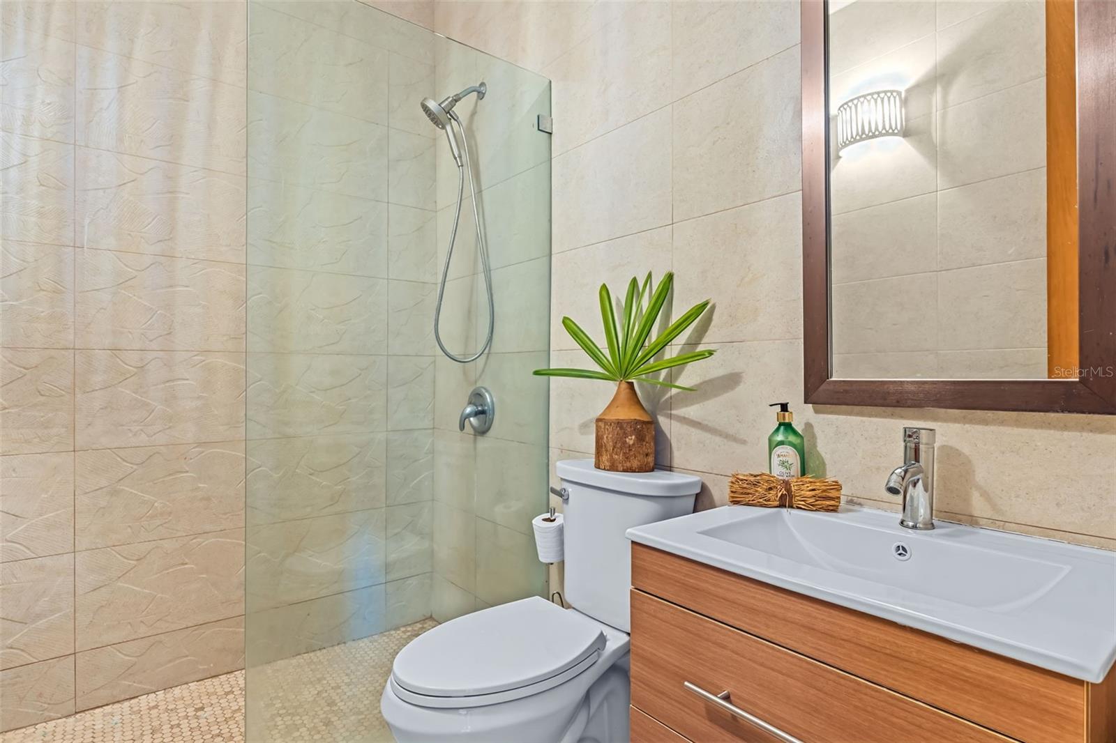 Practical luxury is guaranteed with a generator and solar water heater, ensuring convenience and continuous comfort.