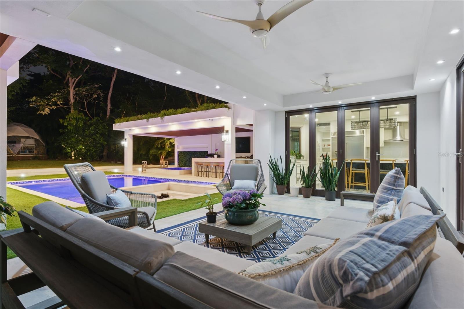 In addition to the main residence, the property includes a detached two-story guest house, allowing independence for visitors or staff. A separate dome structure at the rear of the property offers flexibility as a studio, wellness space, office, or creative retreat.