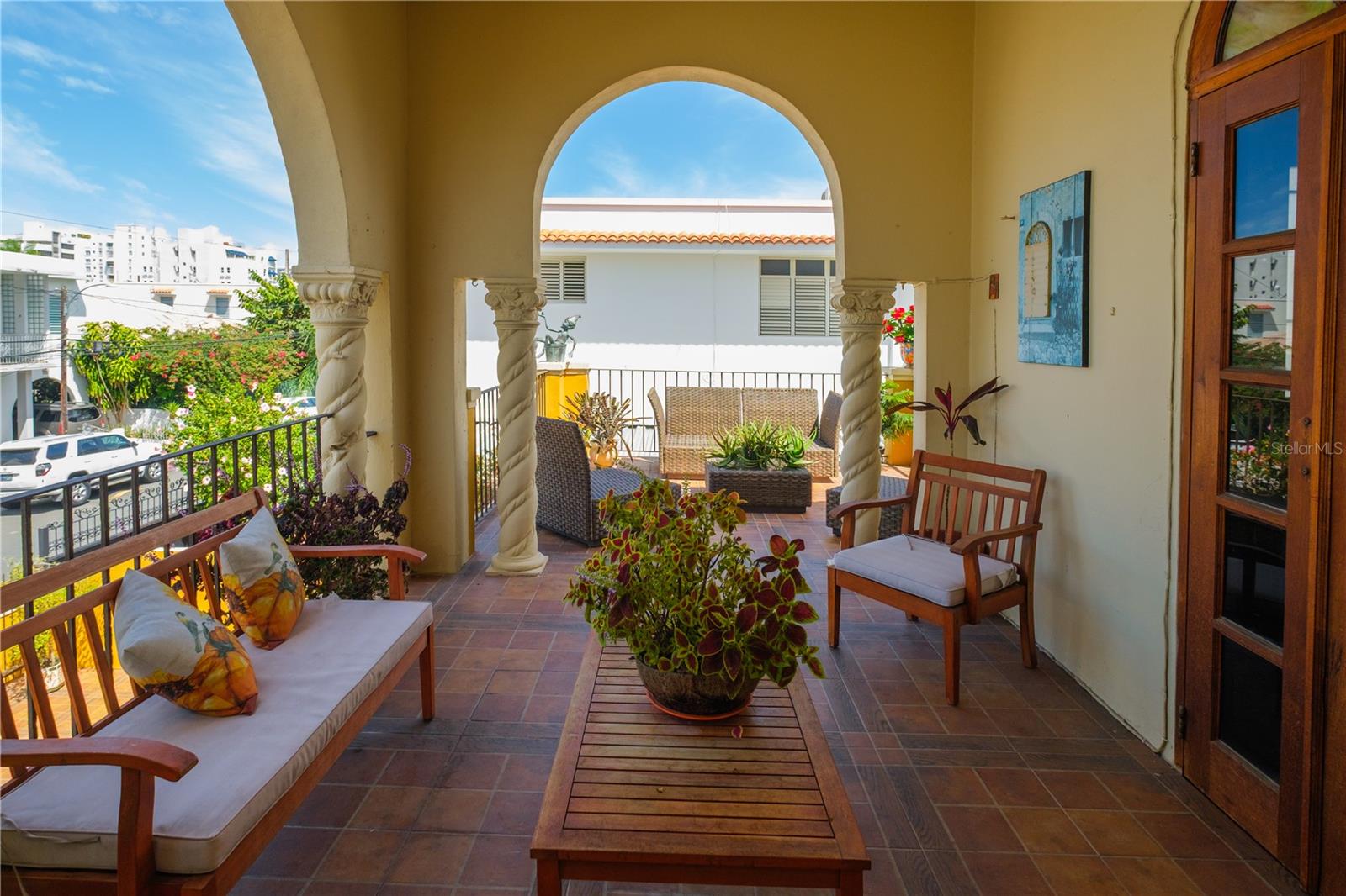 The home showcases classic architectural details, including majestic balconies, original Spanish tile floors, and three open terraces that capture the charm and breezes of this historic district. Spacious living and entertaining areas flow seamlessly to outdoor spaces, creating a warm and inviting atmosphere.