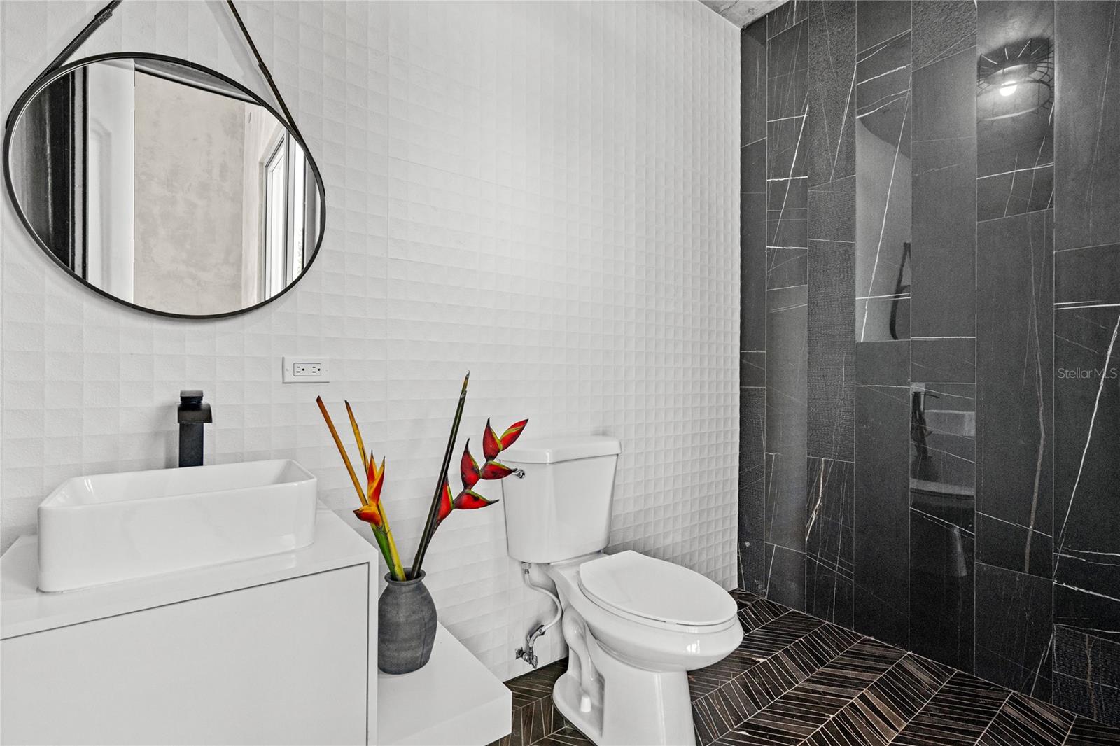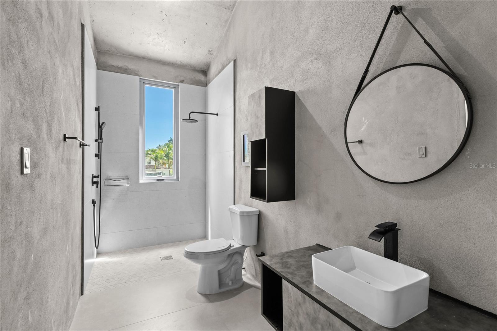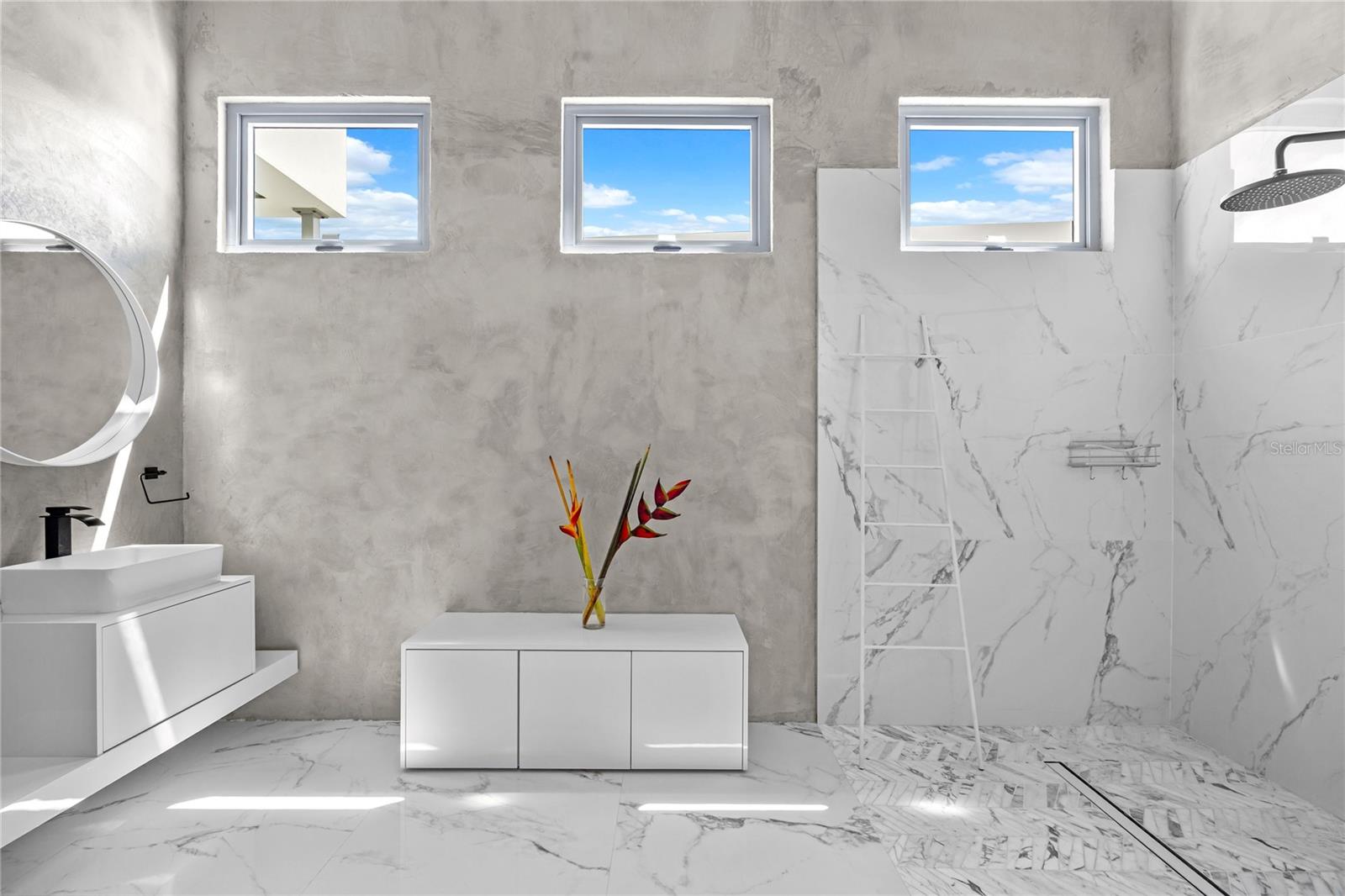 The main residence comprises three en-suite bedrooms with walk-in closets, including a primary suite of generous scale with private terrace access. A detached guest suite with an independent entrance offers flexibility for visitors, studio use, or extended stays. A full power generator provides uninterrupted functionality.