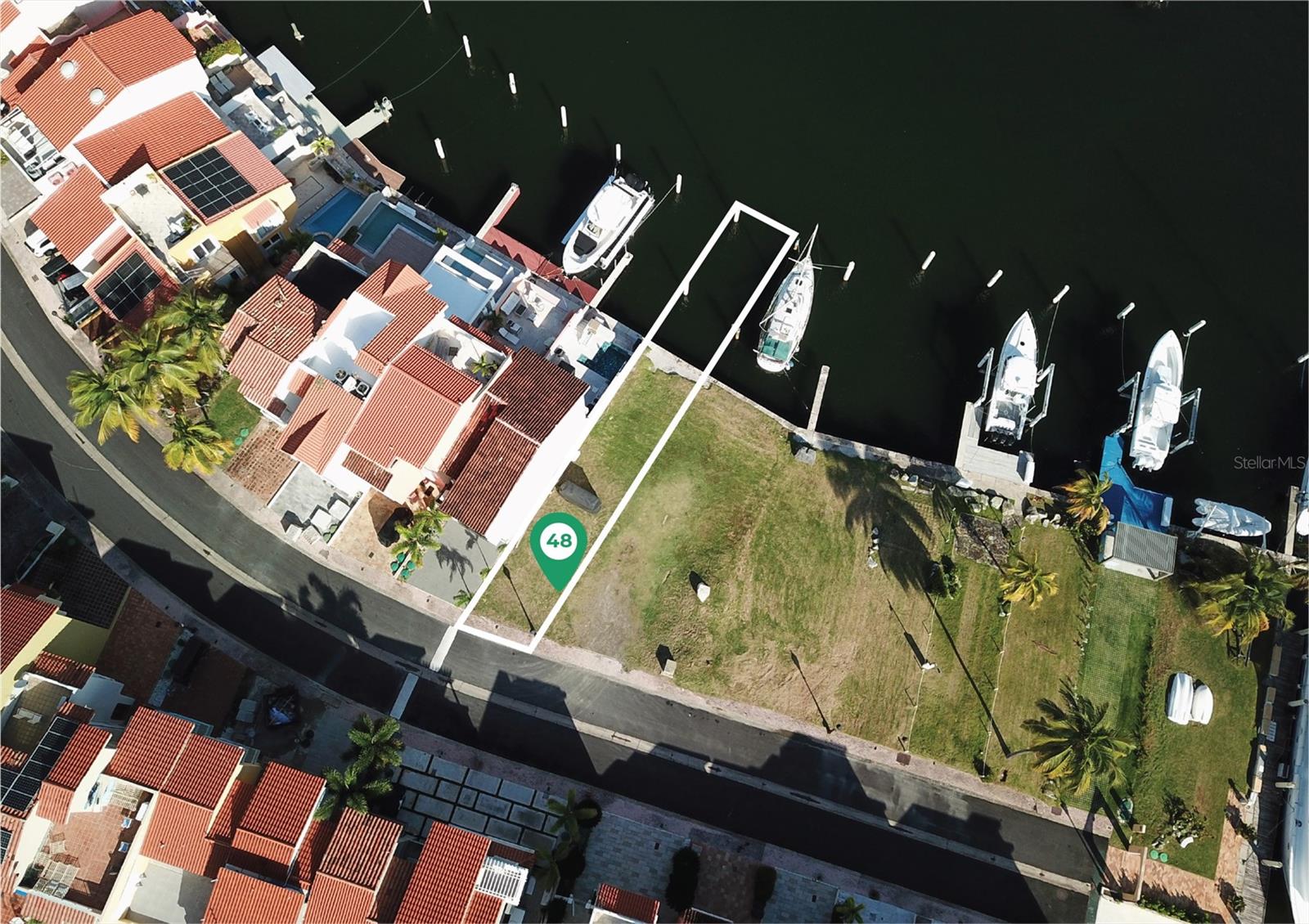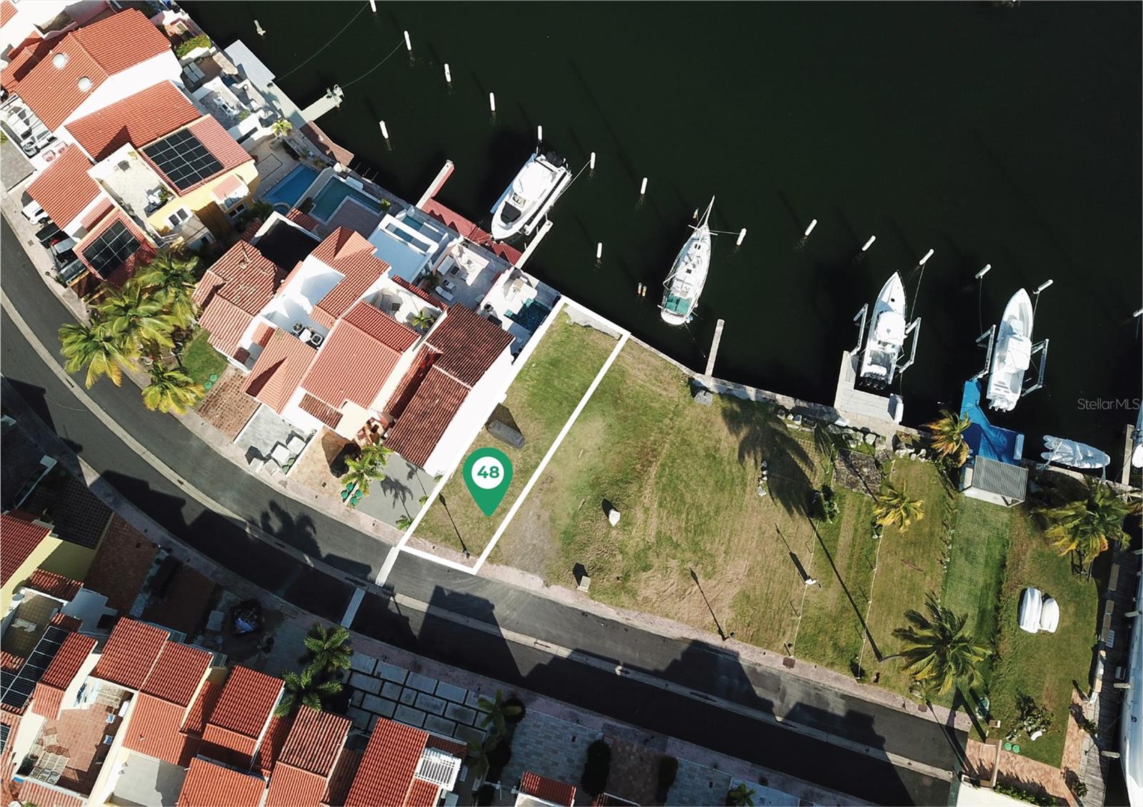 Excellent opportunity to build a custom residence in the exclusive Isla San Miguel marina community within Palmas del Mar. This 157.85 m² waterfront lot includes a boat slip accommodating up to a 50-foot vessel, offering direct access to the Caribbean Sea. Enjoy resort-style living with nearby amenities including the marina, restaurants, golf courses, beach club, tennis and pickleball courts, and miles of walking paths. Located within a gated community with 24-hour security.
