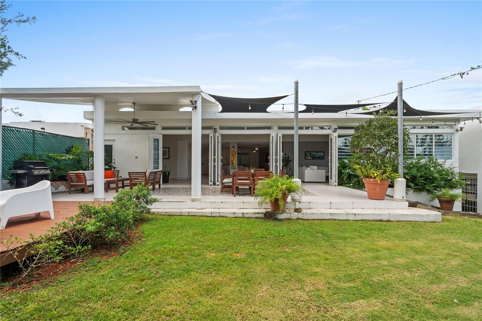 Located within the gated community of San Ignacio in San Juan, this single-story residence offers 3 bedrooms, 3,488 square feet of interior living space, and sits on a 1,316 square meter lot. The layout connects the living and dining areas seamlessly with the kitchen and extends to a covered terrace with a wooden deck, creating a natural indoor and outdoor flow that works equally well for everyday living and for hosting gatherings.