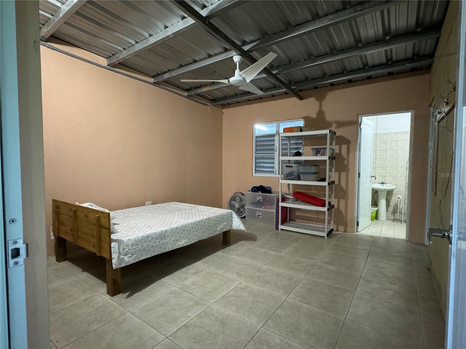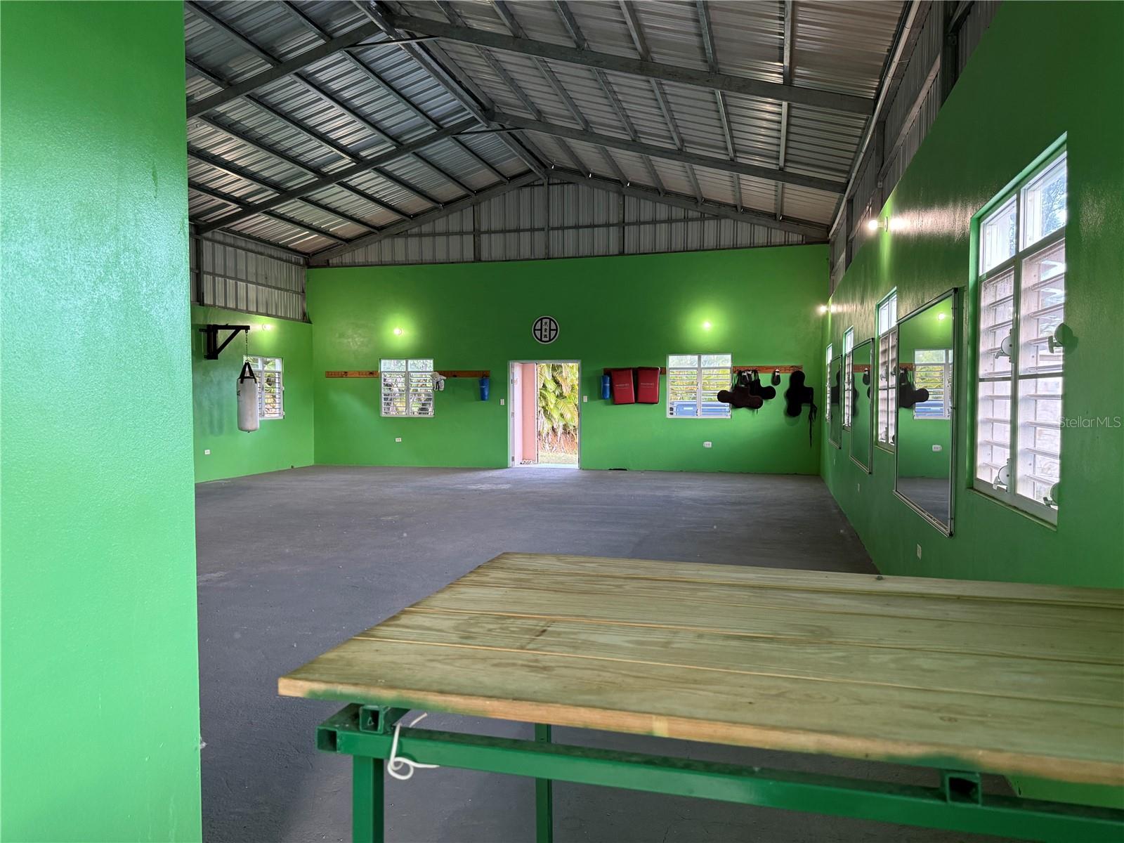 Adjacent to the hangar is a separate 300-square-foot structure, constructed in concrete with a zinc roof, featuring a bathroom and kitchen area—ideal as a guest studio, short-term rental unit, or workspace.