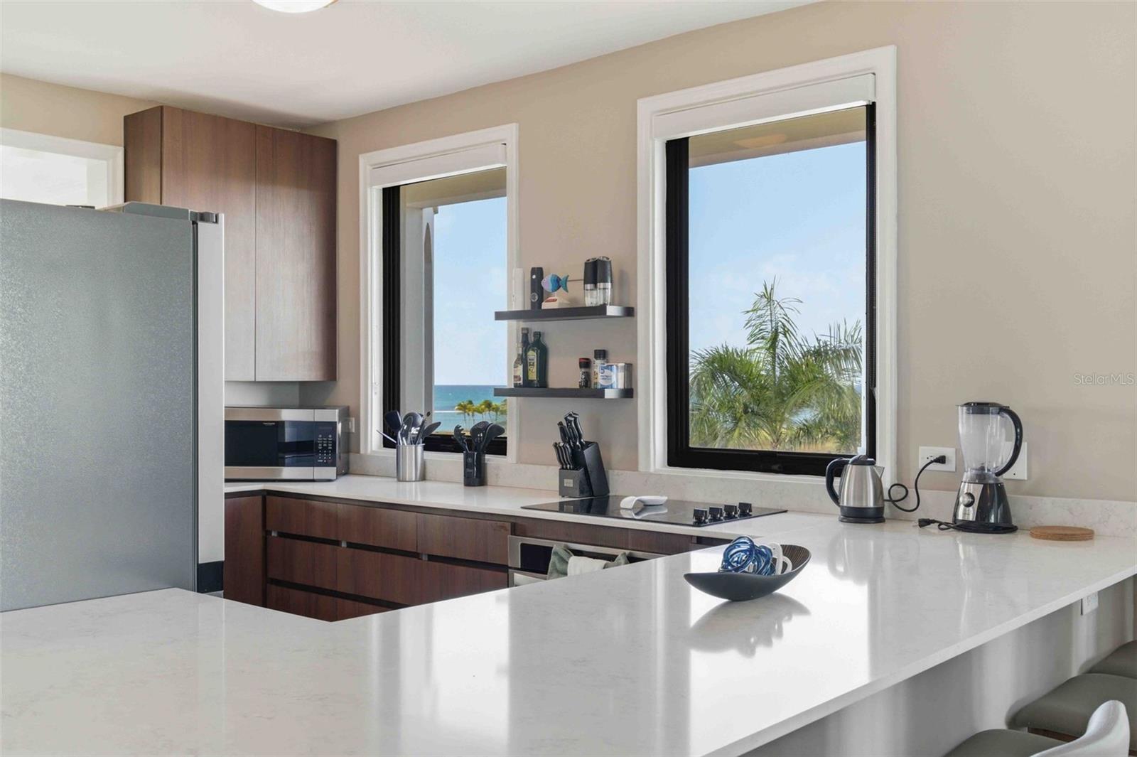 Floor-to-ceiling doors open to a spectacular terrace where sweeping Atlantic Ocean horizon views take center stage—perfect for sunrise mornings, ocean breezes, and unforgettable entertaining. The residence features three spacious bedrooms, three and a half bathrooms, multiple living areas, and a fully equipped chef’s kitchen with state-of-the-art appliances, delivering both comfort and luxury at every turn.