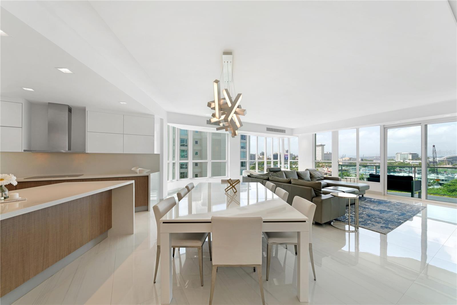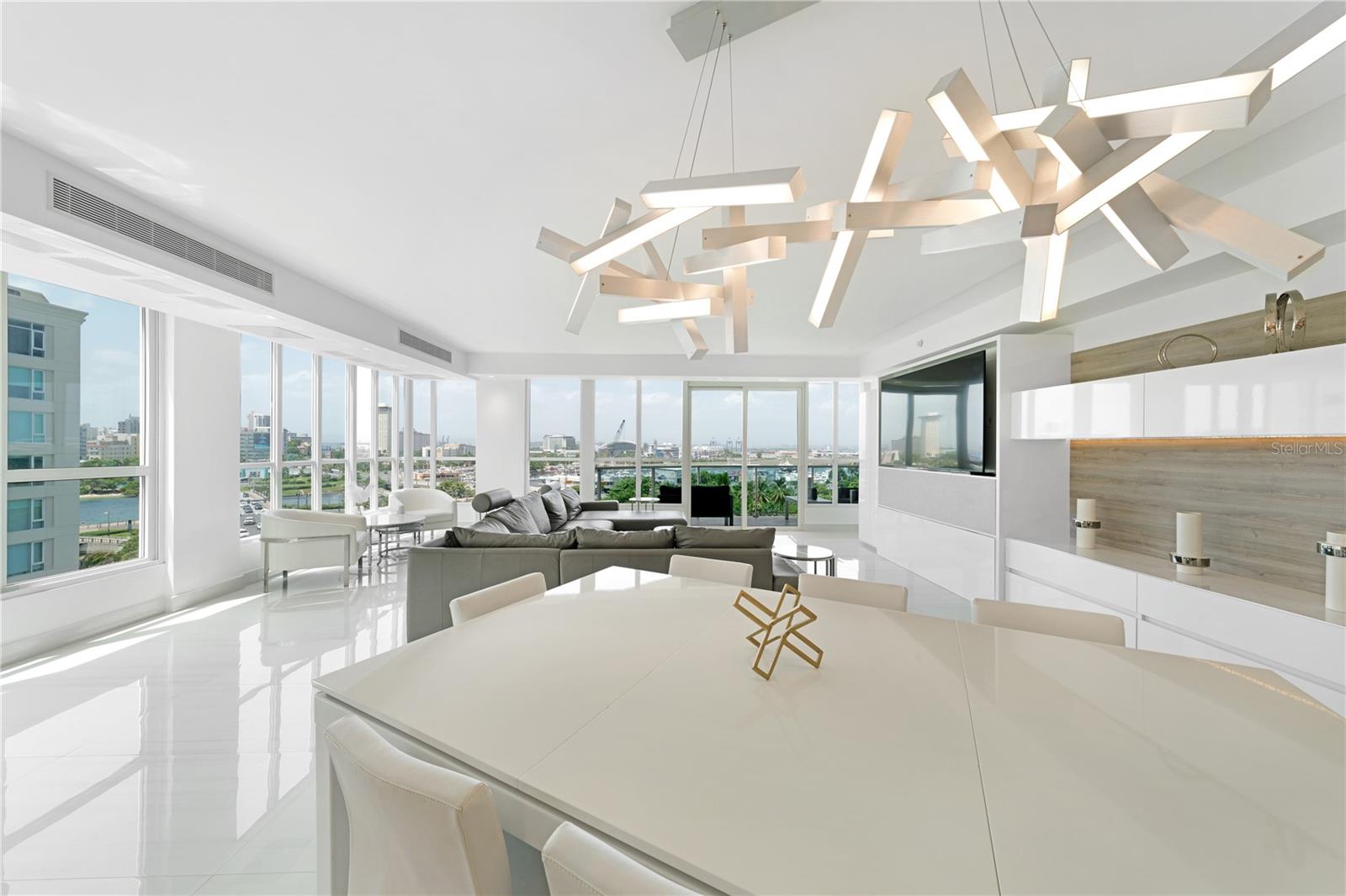 This stylish 8th floor corner unit at Bahia Plaza offers panoramic views of the San Juan Bay and the District's skyline. The impeccably designed 2 bedroom, 2.5 bath residence with 2,071 interior and exterior square feet is located in the coveted Paseo Caribe complex situated between Condado Beach and Old San Juan. Residents enjoy concierge services, pool, gym, lounge and a full power generator.