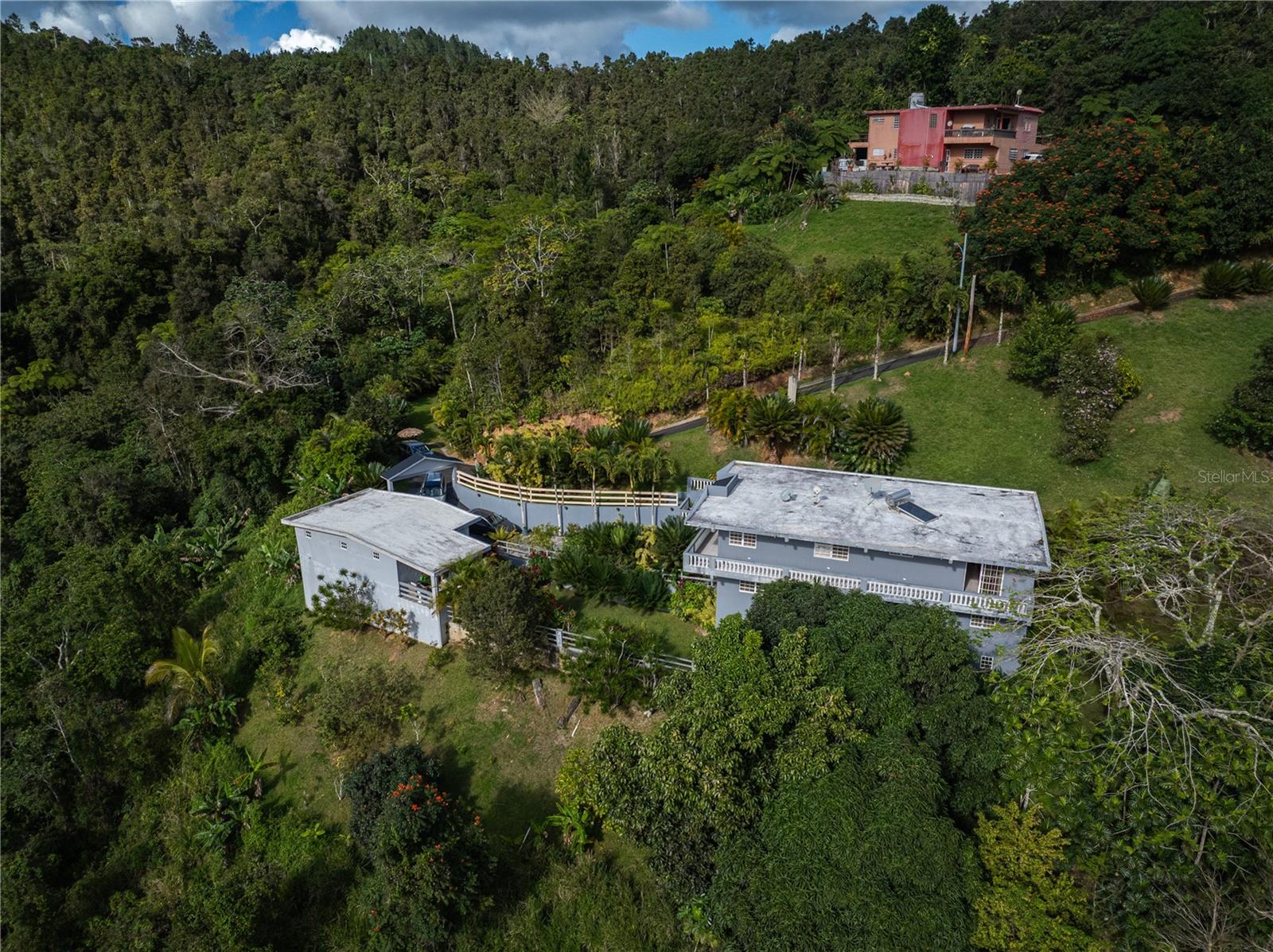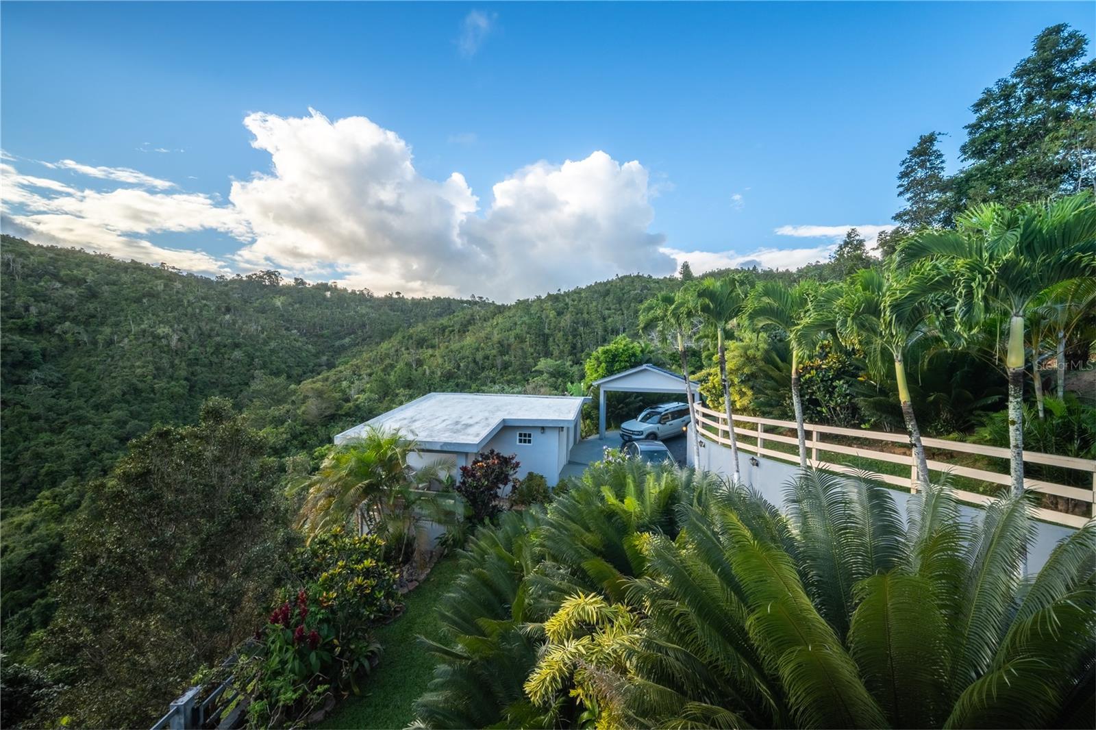 Located on the edge of the Bosque de Pinos in Cayey, this multi-unit property offers a private retreat with scenic valley views. The top-floor residence features a 3-bedroom, 2-bathroom layout with a wrap-around balcony, totaling 1,880 square feet of space. This unit includes a primary bedroom with an ensuite bathroom and jacuzzi tub, tiled floors, louvered windows, and a versatile hallway study. The middle-floor unit, accessible at ground level from the carport, features 2 bedrooms and 1 bathroom with a newly renovated kitchen. This property presents a significant opportunity for multi-generational living or a versatile income-generating investment; the layout allows for living in one unit while renting the other, or utilizing the entire property as a high-capacity rental. Featuring a two-bay concrete garage with a workspace, gated entry, and established landscaping that blends into the adjacent forest, this home provides a flexible and private living arrangement.