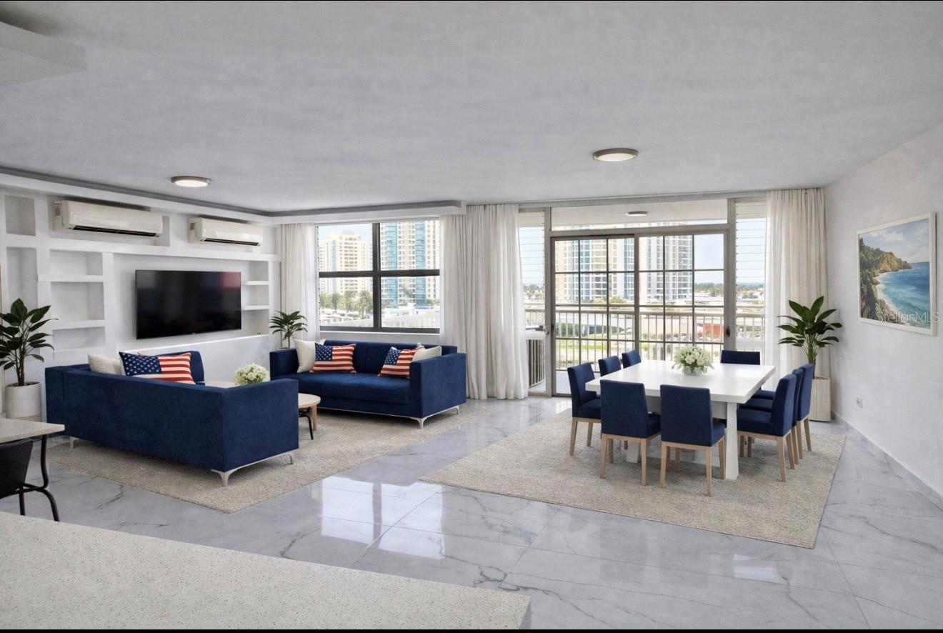 Amplio apartamento de 3 habitaciones y 2 baños, completamente remodelado, amueblado y equipado, ubicado en el séptimo piso del Condominio Mundo Feliz en Isla Verde.