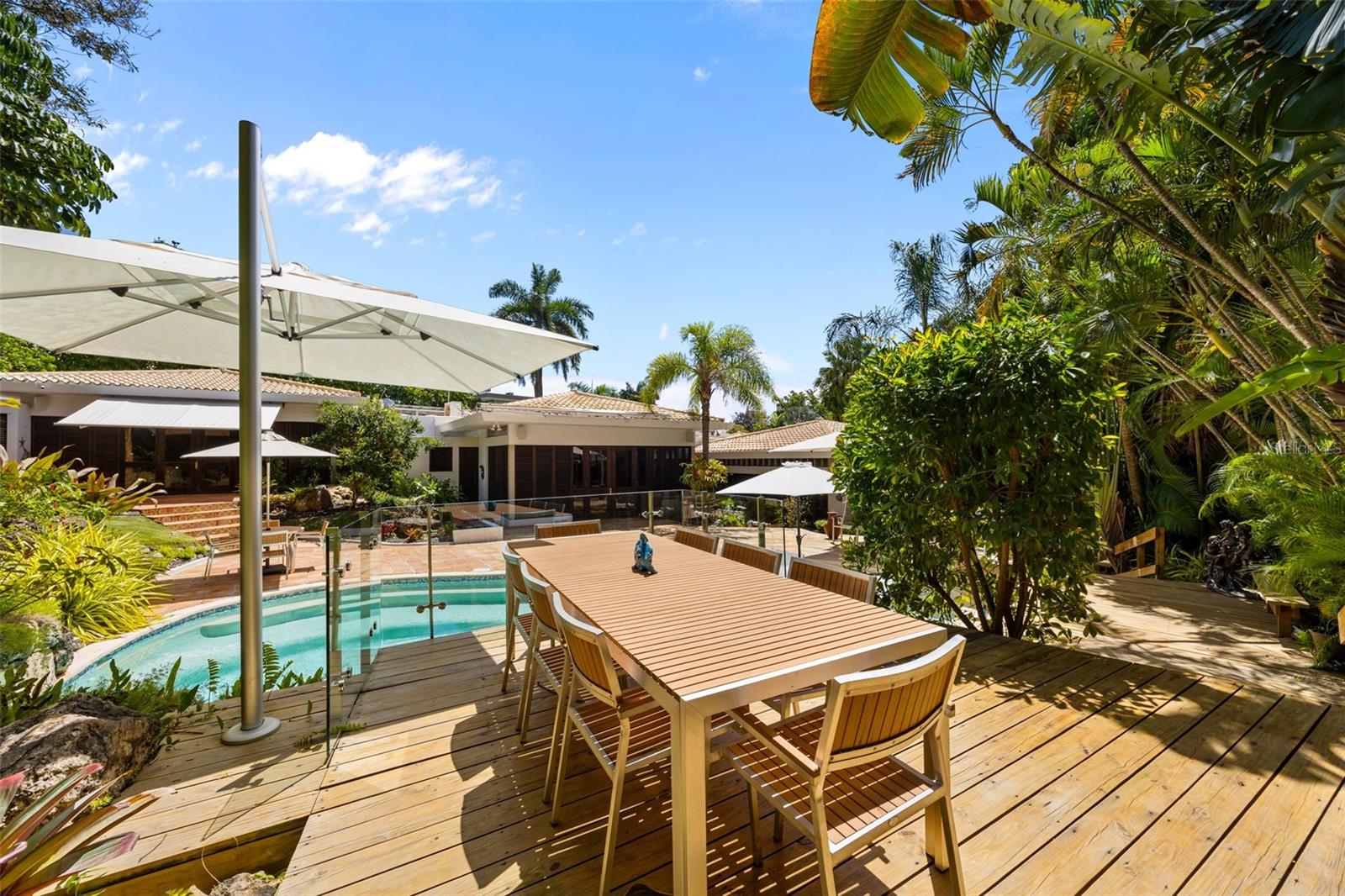 Discover this spectacular residence located in the exclusive community of Villa Caparra, where privacy, luxury, and a tropical ambiance come together seamlessly. This impressive property offers approximately 6,000 square feet of construction on a generous 1,752 square meter lot, providing expansive and versatile living spaces for ultimate comfort. The home features six bedrooms and five and a half bathrooms, ideal for large families or those who love to entertain guests. Inside, you’ll find an expansive family room, perfect for gatherings, relaxation, or creating unforgettable moments with family and friends. Step outside into your own private tropical oasis. The property boasts a beautiful covered sitting area by the pool, along with multiple outdoor areas designed for entertaining, intimate gatherings, or simply unwinding with a glass of wine in complete privacy. Every corner of the backyard has been thoughtfully designed to enhance outdoor living. This residence has been fully remodeled, blending modern design with functionality. It includes a covered garage and can be sold with select furnishings, making the transition for the new owner even more convenient. For energy efficiency and peace of mind, the property is equipped with: 28 solar panels, 3 Tesla batteries, 22 kW generator with transfer switch, 12 mini-split air conditioning units, and 2 filtered cisterns totaling 2,200 gallons. This exceptional home offers the perfect combination of luxury, space, privacy, and a resort-style lifestyle in one of the most exclusive areas of the metropolitan region.