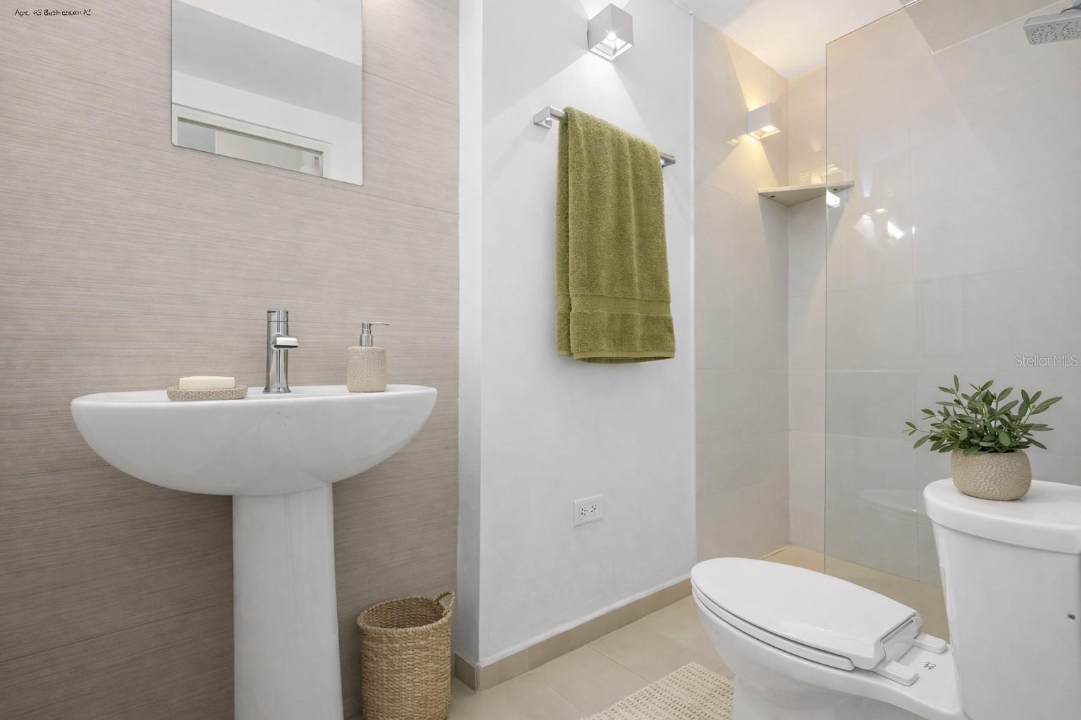 One or more photo(s) has been virtually staged. This second-floor residence offers 2 bedrooms and 2 bathrooms bathed in natural light across 819 square feet of thoughtfully designed living space. Defined by its open-concept layout, the home creates a seamless flow between the new custom kitchen with quartz countertops, dining, and living areas with Porcelanosa tile throughout. A private balcony off of the living space, offers the perfect setting to place your own outdoor furniture and plant your favorite herbs. Elevated above the courtyard, the residence boasts an airy, spa-like feel with abundant sunlight throughout.