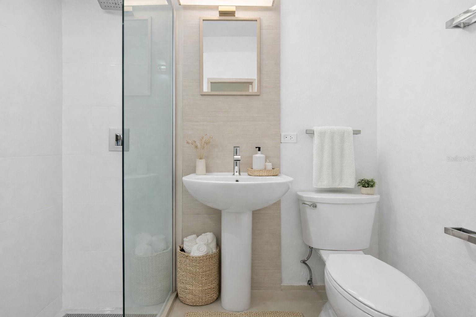 One or more photo(s) has been virtually staged. This spacious second-floor residence offers a bright and open layout with 2 bedrooms and 2 bathrooms with approximately 850 square feet of light and airy living space. Looking over the Condado skyline the apartment features a private Juliet balcony that spans from the bedroom into the main living area, creating a seamless indoor outdoor ambiance. This unit includes one enclosed garage parking space for added convenience and security. Thoughtfully designed with a brighter, open feel, the residence is delivered fully furnished and turnkey. Modern finishes, all new appliances, imported Porcelanosa tile, and details throughout enhance both functionality and style, while the elevated position allows for an increase in natural light. These units are delivered furnished, select images are enhanced using AI to showcase the full potential of the space and inspire how you can personalize it to reflect your own style and vision. Location Perfectly positioned in the heart of vibrant Condado, this residence offers an effortless lifestyle just moments from the beach, renowned restaurants, cafes, grocery stores, and premier entertainment. With quick access to major highways and only a 10 minute drive to the airport, the location seamlessly blends convenience with one of San Juan’s most desirable coastal settings. As part of an exclusive six-unit collection, residents enjoy access to a beautifully maintained shared courtyard, offering a quiet and intimate atmosphere in the heart of the city—where the energy of urban living meets the privacy and serenity of a secluded oasis.