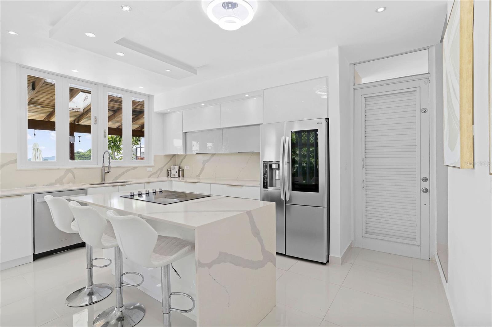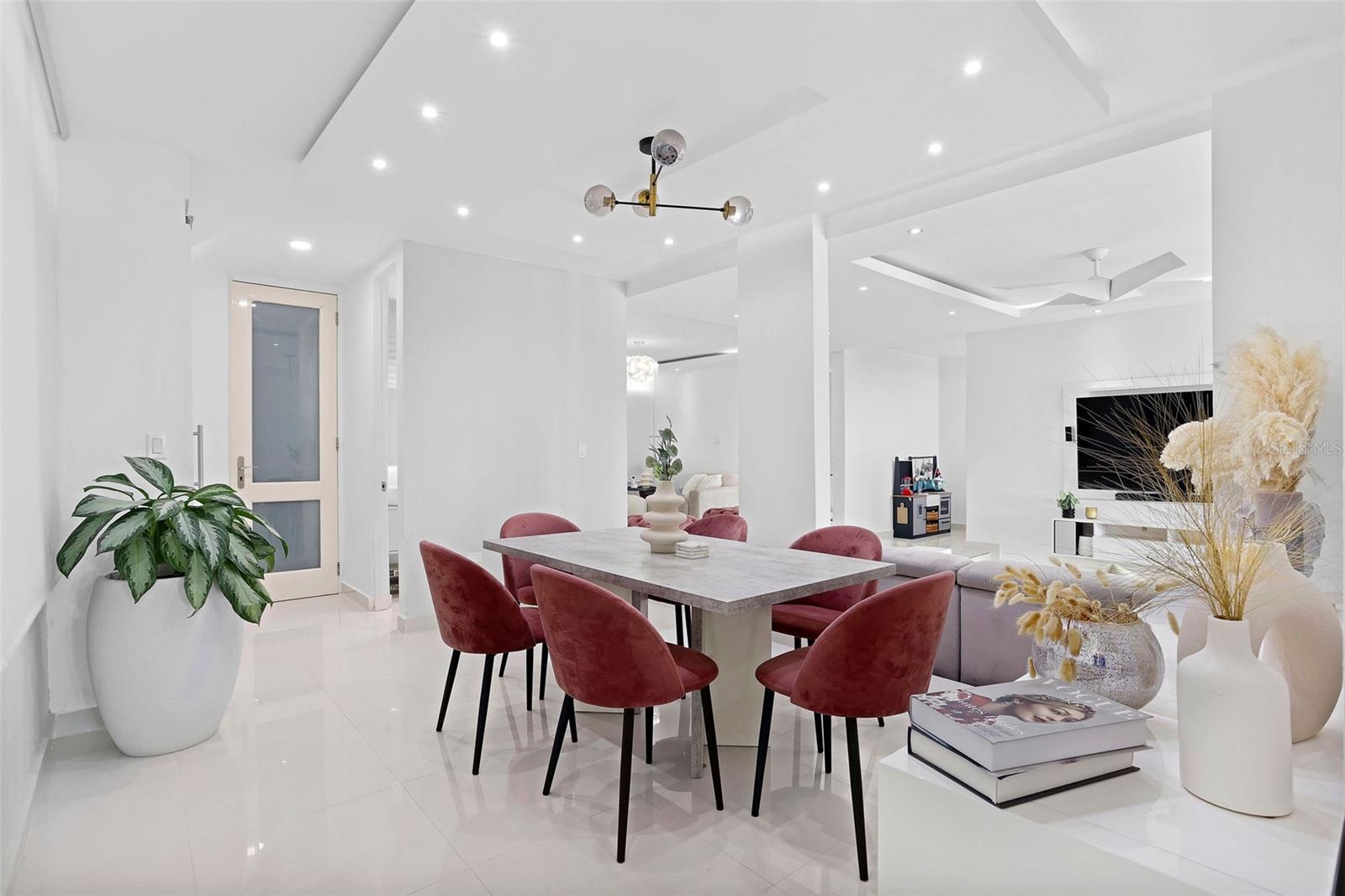 Welcome to this beautifully renovated 4-bedroom residence with a dedicated office, located in the secure, family-friendly community of Mansiones de Alejandrino. Designed for both comfort and functionality, this home is filled with natural light and features a seamless open-concept layout that connects the living, dining, and kitchen areas—perfect for everyday living and entertaining.