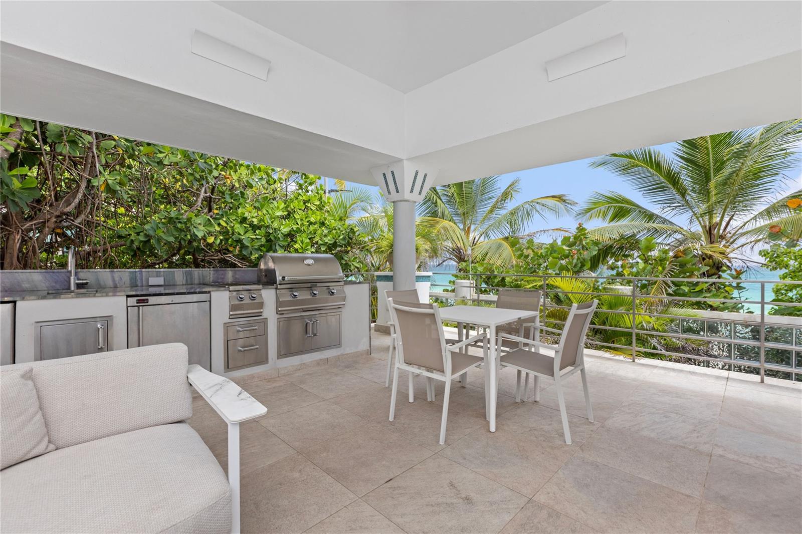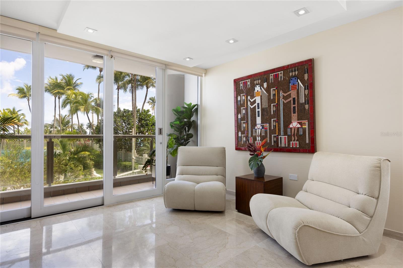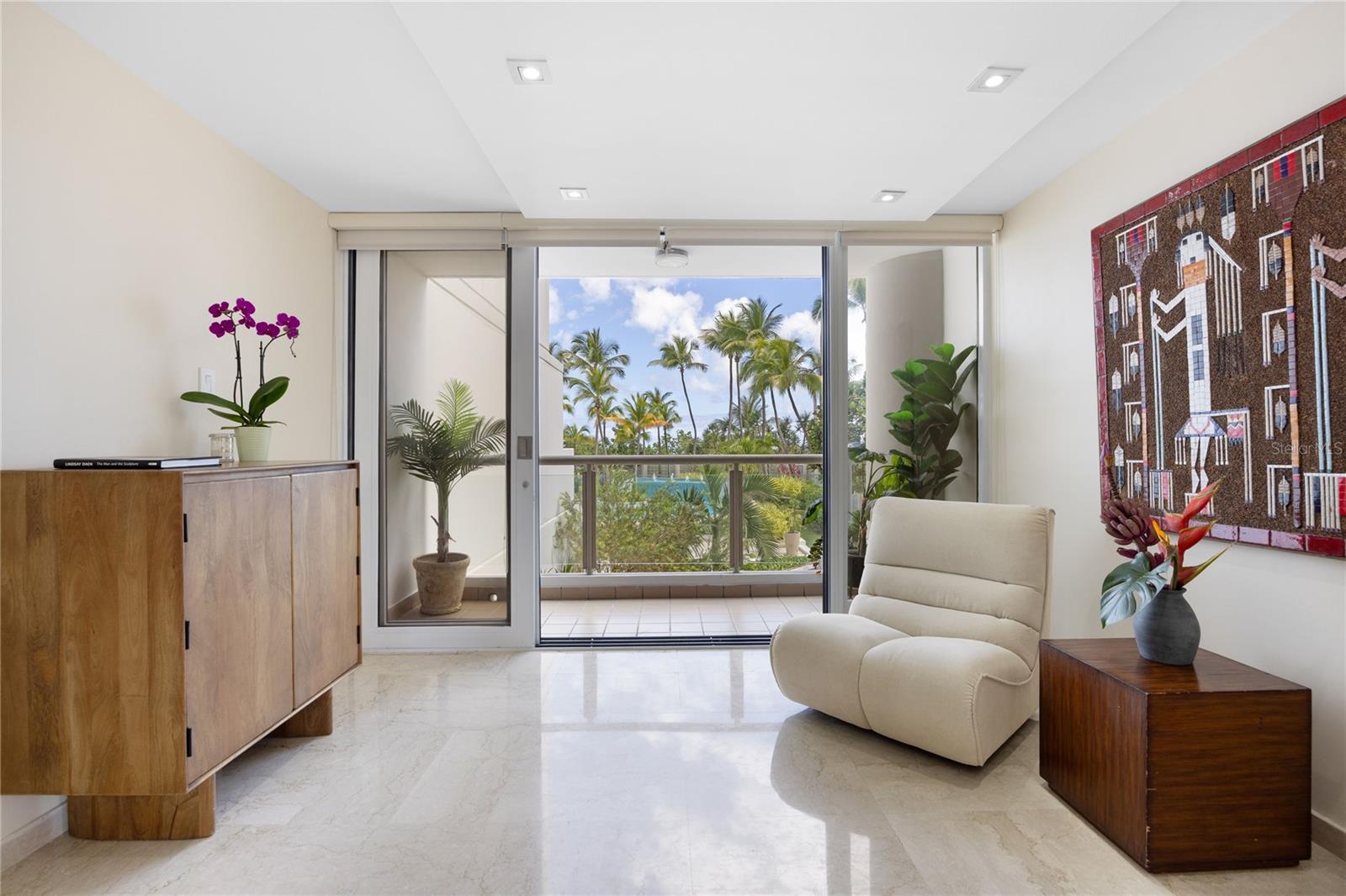 Oceanfront Living at Candina Reef | Truly flawless, this second-floor residence has been renovated to meet the highest standards at Candina Reef, Condado’s most coveted full-service condominium. Positioned on a quiet corner at the end of Candina Street, this building features a grand lobby with lavish woodwork, stained glass and elegant marble details. The expansive grounds provide resort-style amenities with direct beach access, a fully equipped fitness center, sauna and steam room. The tree-lined pool area is complete with lush vegetation, lively waterfalls, multiple lounging areas, a children’s pool and playground. Entertaining is a breeze at the gazebo area, which is outfitted with a two-burner gas stove, full gas grill, ice maker, and mini fridge/freezer. Residents of Candina Reef benefit from a full power generator, 24/7 security personnel, concierge, mail room, in-house administrator, two brand-new elevators and a designated service elevator.