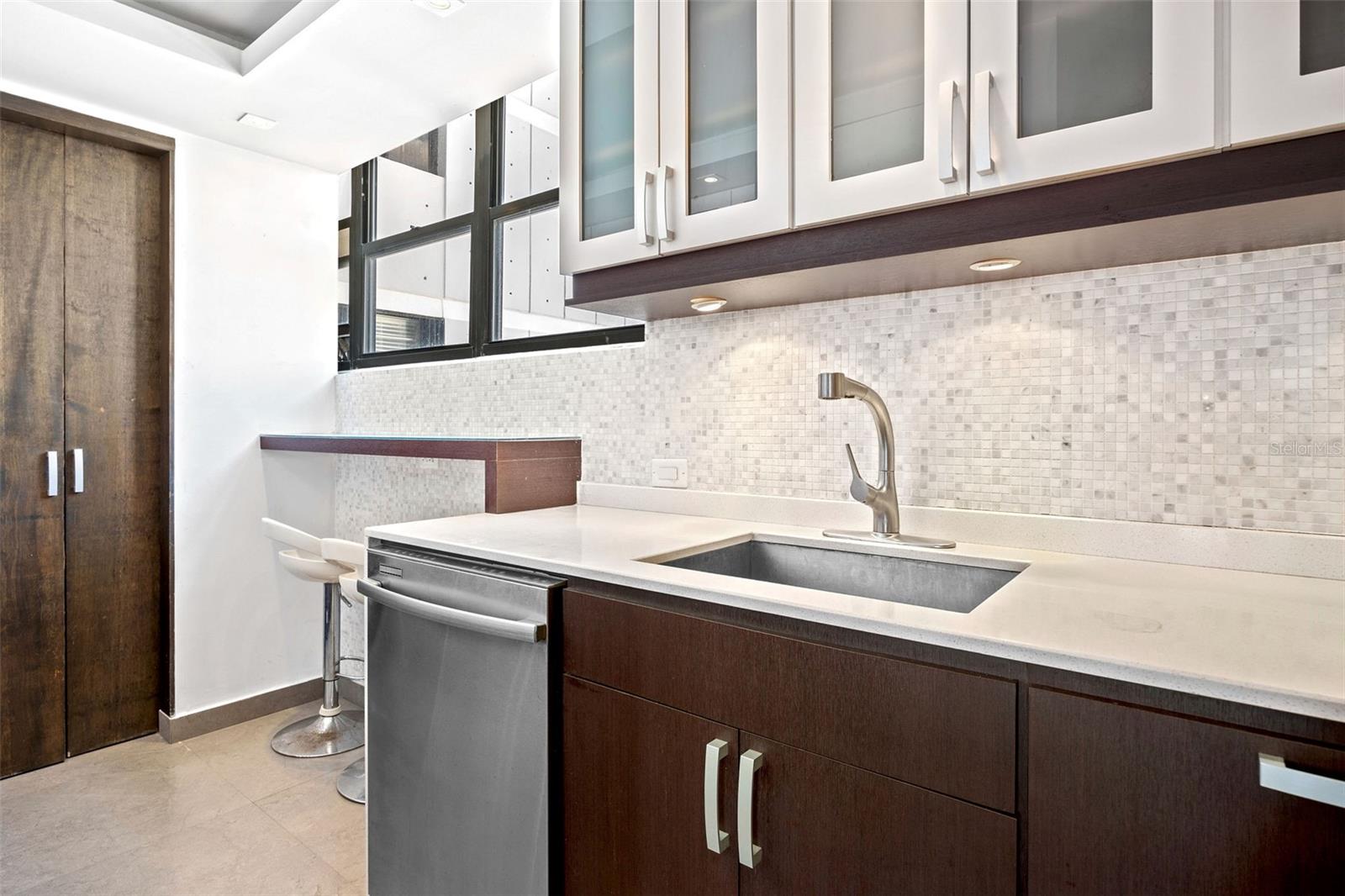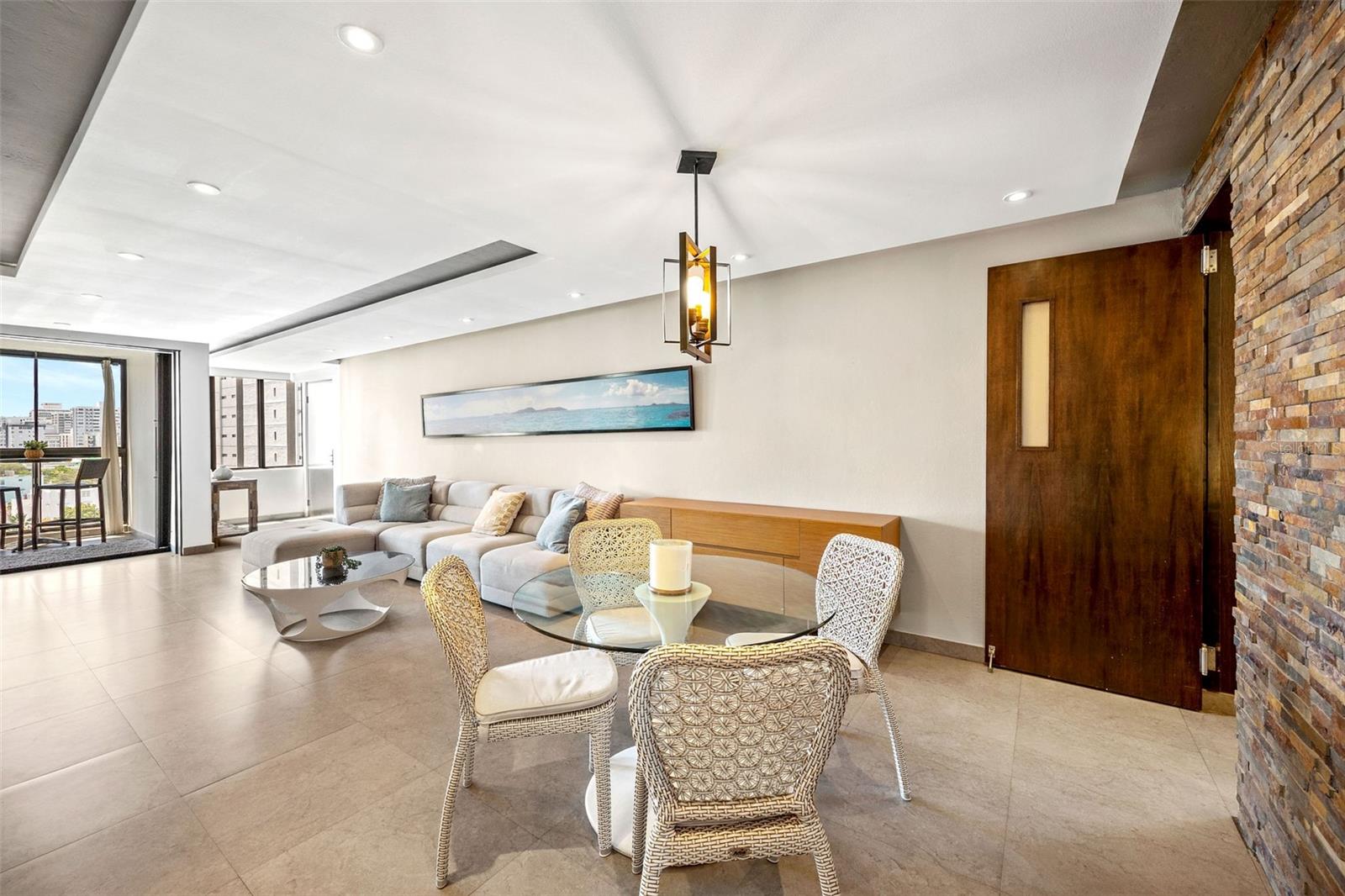Stylishly renovated and thoughtfully appointed, this two-bedroom, two-bath residence at Condado Real offers a seamless blend of comfort and design. A sleek, modern kitchen anchors the space, while gray floor tiles unify the interiors with a soft, contemporary elegance.