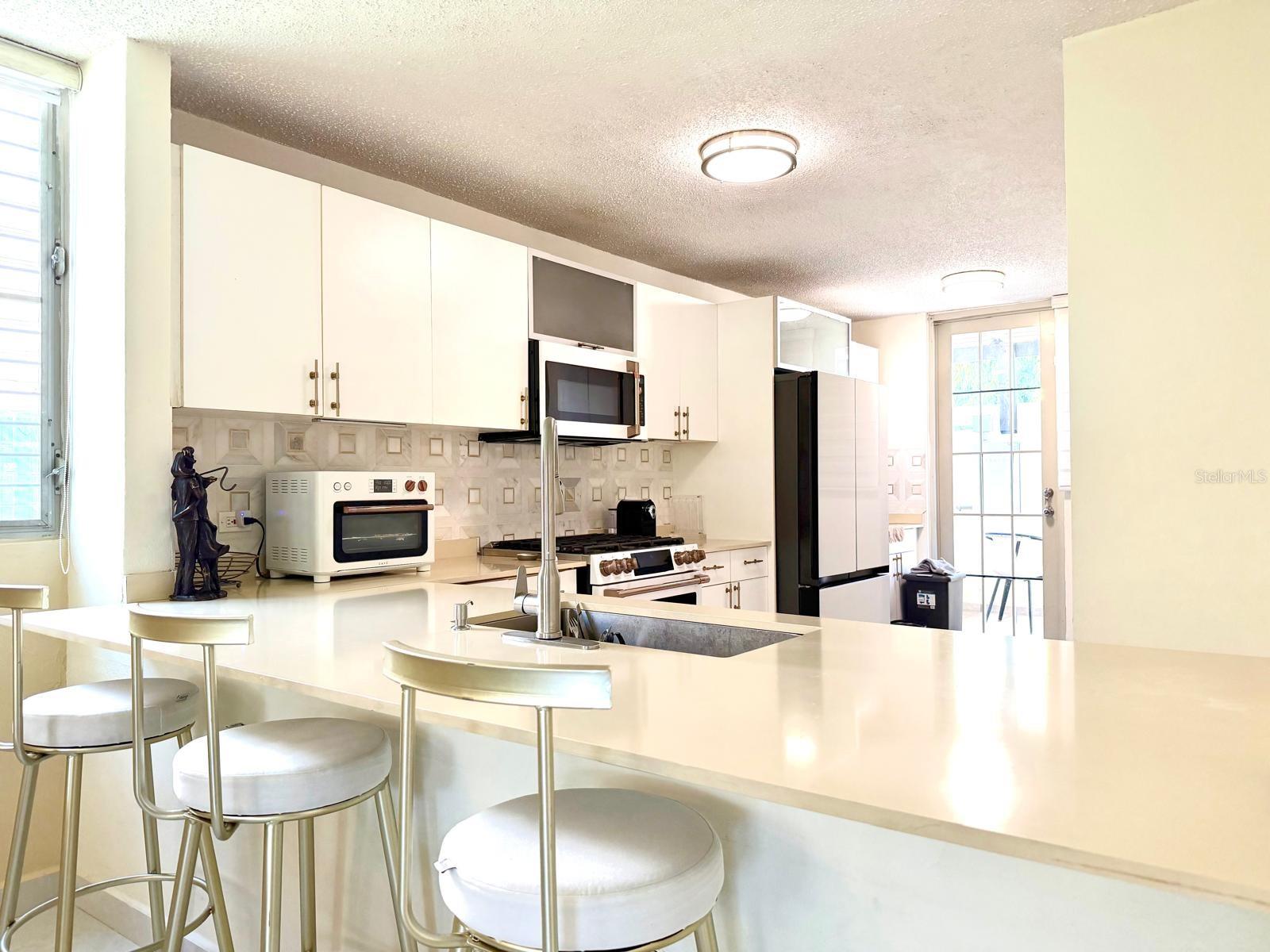 Experience modern, effortless living in this all included beautiful townhouse located in the gated community of Villas del Sol, offering approximately 1,725 sq. ft. of thoughtfully designed space with 3 spacious bedrooms and 2.5 bathrooms; this move-in ready, fully furnished two-story corner residence features a contemporary open-concept layout with elegant earth-tone finishes and polished porcelain floors, multiple living areas with large Samsung TVs, a fully equipped kitchen with premium appliances and quartz countertops, and an expansive master suite with walk-in closet and spa-like bathroom, while also providing front and backyard spaces, a private terrace, and multiple access points for added convenience and privacy. Designed for comfort and efficiency, the home includes two side by side parking spaces, inverter A/C units, 22 solar panels with Tesla battery backup, and a Blink security system, all within a gated community with 24/7 controlled access, security, pool, playground, and well-maintained common areas, ideally located just minutes from the airport, schools, supermarkets, and essential services—plus all utilities are included, making this an exceptional turnkey rental available immediately.