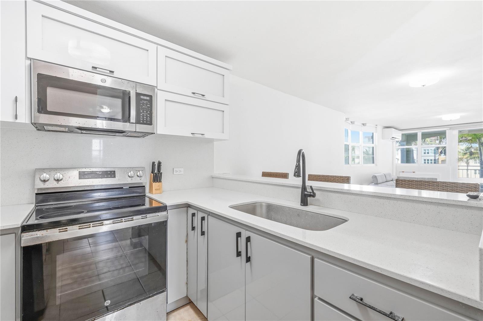 Kitchen, Living Room, Primary Bedroom
