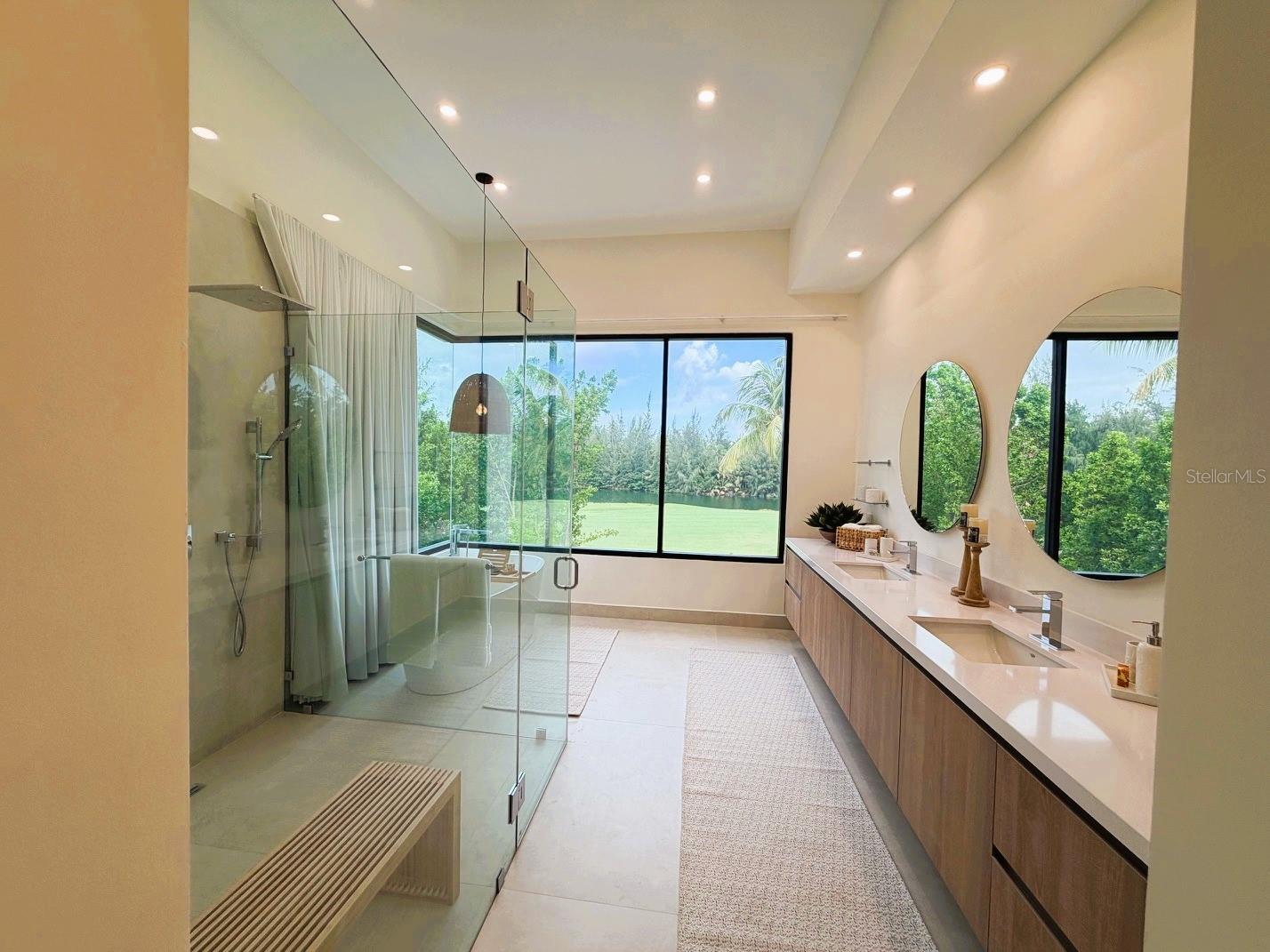 Impeccably crafted and exceptionally spacious, this elite residence at Four Seasons Resort Puerto Rico at Bahia Beach offers over 15,000 square feet of refined living across three finished levels, set on nearly half an acre with sweeping views of a tranquil lake and championship golf course. Designed to harmonize with its lush surroundings, the home showcases professionally curated interiors that frame panoramic vistas in every direction—serene golf course and lake views to the south, the verdant peaks of El Yunque National Forest to the east, and effortless access just steps away to the resort’s pristine two-mile crescent beach. At the heart of the home, a bespoke Italian kitchen blends striking design with everyday functionality, anchored by a dramatic waterfall island and appointed with premium Thermador appliances, an expansive wet bar, wine refrigeration, and a discreetly concealed pantry for seamless entertaining. The open-concept layout transitions effortlessly to the outdoor living spaces, where the estate transforms into a private resort ~ 7000 SQFT of outdoor finished space —featuring a 55-foot infinity pool with bench seating, waterfall feature, a 12-person heated hottub, sun shelf with bubblers, outdoor showers, a dedicated pool bath, and a fully equipped designer BBQ pavilion with bar seating. Dual-level terraces, connected by elegant glass-railed stairways, provide multiple settings for entertaining and relaxation, all appointed with sophisticated furnishings. The residence offers six generously proportioned bedroom suites, each with a private, elegantly appointed bath and expansive custom Italian walk-in closets. The primary suite is a true sanctuary, capturing breathtaking views from every angle and complemented by a spacious sitting area, a spa-inspired bath with dual showers and soaking tub, and a couture-style dressing room with center island and bespoke cabinetry. An upper-level lounge with wet bar opens to a secondary terrace overlooking the pool and fairways, while the rooftop terrace delivers extraordinary 360-degree views encompassing the ocean, rainforest, and surrounding landscape—ideal for sunset entertaining. Finishes throughout include oversized European 4’ x 4’ travertine-style tile, the special splash of modern wall decorative textures, complemented by two additional powder rooms, multiple expansive terraces, and two sets of washers and dryers in luxury laundry facilities with Italian cabinetry on each bedroom level. The four-car garage is equipped with two ready-to-install electric vehicle charging stations. Modern infrastructure includes an elevator-ready shaft, enhanced plumbing systems, impact-rated windows and doors, app-controlled climate systems, whole-home data and security integration, and a 100kW diesel generator. Residents enjoy access to an unparalleled suite of resort amenities, including a Robert Trent Jones Jr.–designed golf course, tennis facilities, resort pools, fitness center, luxury spa, and fine dining. The Beach Club, Nature Center, waterpark, and miles of scenic walking and biking trails further elevate the lifestyle. Recognized as one of only 21 Audubon International Signature Sanctuary Gold-certified resorts worldwide, this extraordinary community is ideally located just 25 min from Luis Muñoz Marín International Airport - offering a rare blend of privacy, natural beauty, and world-class luxury.