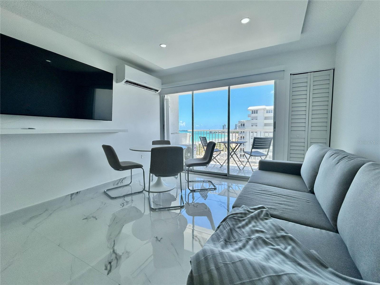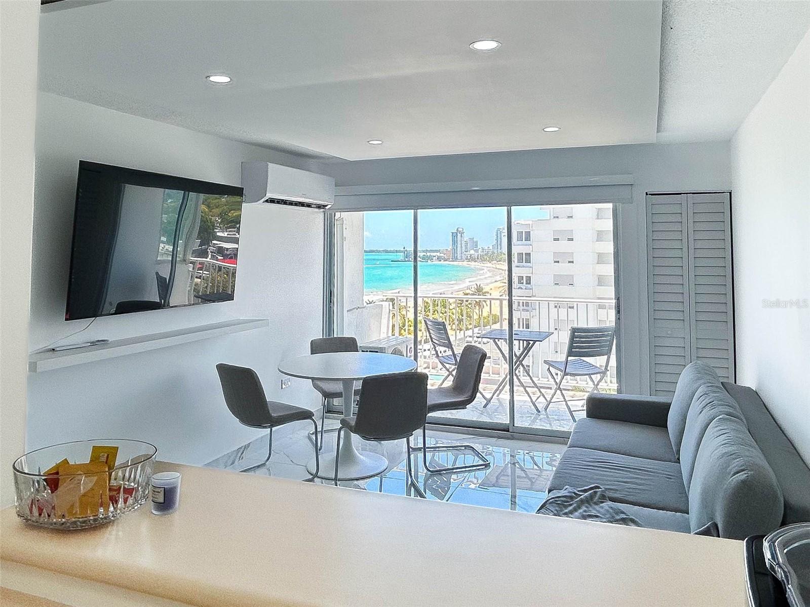 A fully furnished studio apartment is for sale in the El Girasol Condominium, in the heart of Isla Verde. This modern sixth-floor unit features luxurious flooring and a private balcony with stunning panoramic ocean views. It is equipped with a modern kitchen, inverter air conditioning, and 24-hour security. Its strategic location on Isla Verde Avenue offers direct access to the beach, restaurants, and nightlife. Contact us today to schedule a appointment!