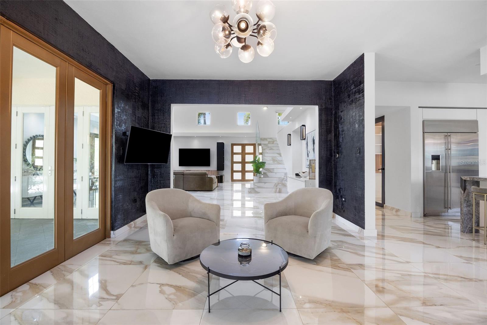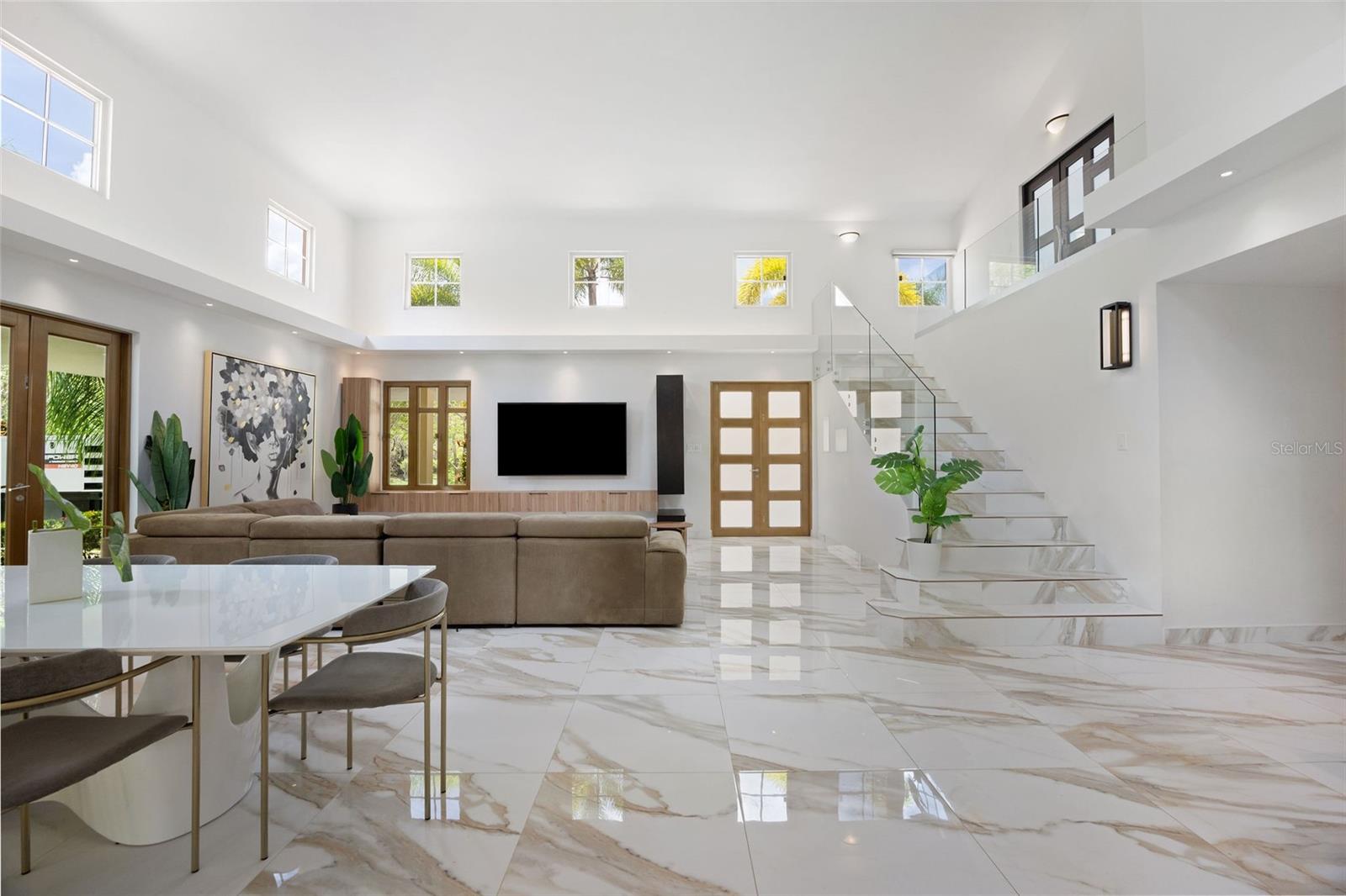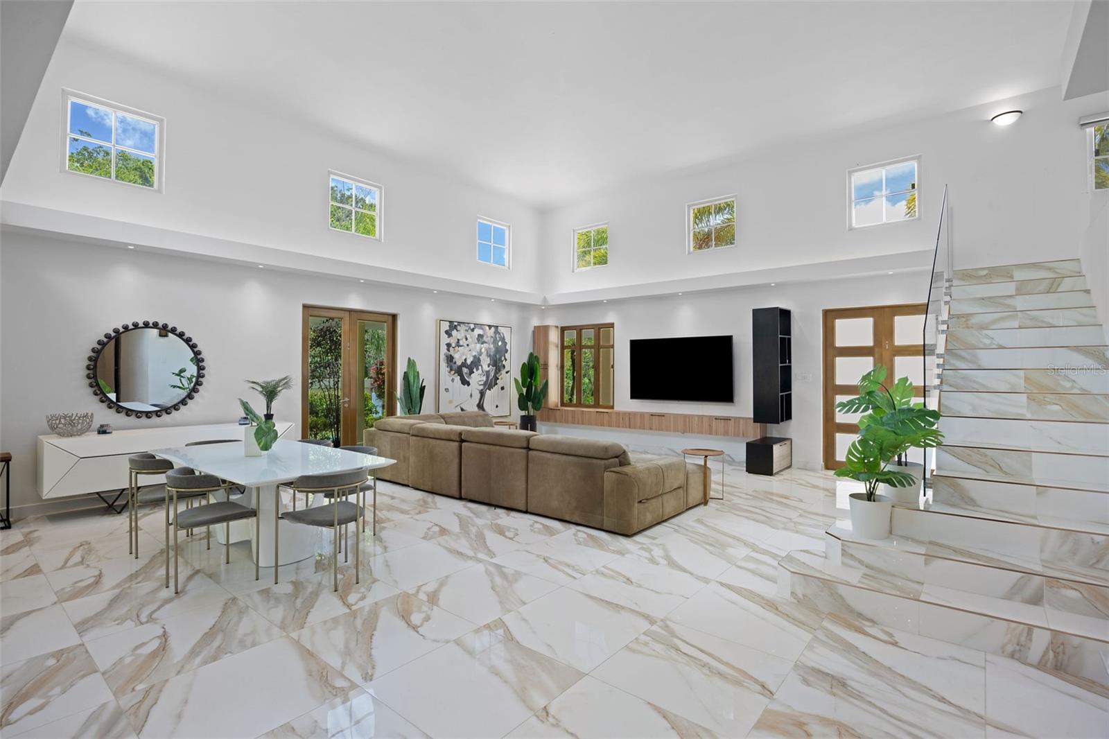 Boasting 6 bedrooms, 5 full bathrooms, and a dedicated office space, the home is thoughtfully laid out to provide both comfort and functionality for family living, remote work, and entertaining. Upon entering, you are welcomed by an open-concept living area featuring soaring double-height ceilings, abundant natural light, and renovated flooring. The seamless flow between living, dining, and outdoor spaces creates an inviting and airy atmosphere throughout.
