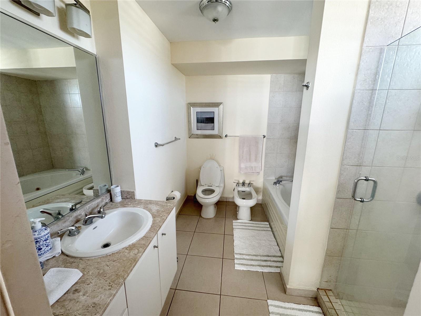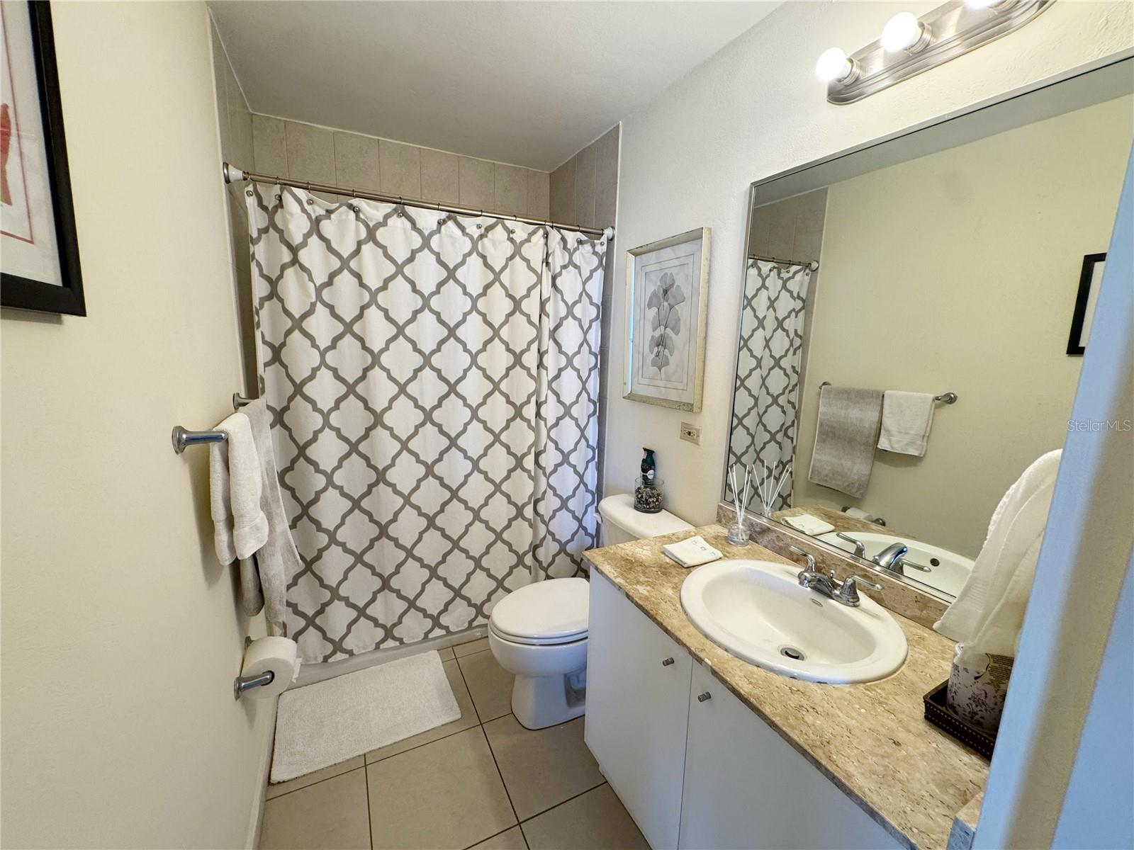 Furnished 1-bedroom apartment (originally 2) 2 bathrooms, and 2 side-by-side parking spaces.
