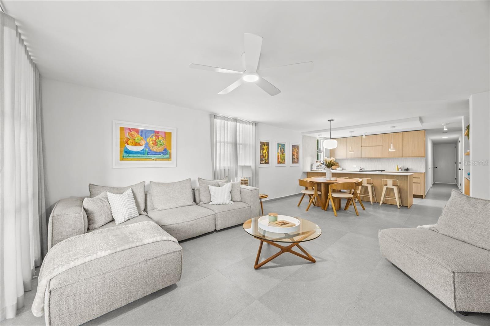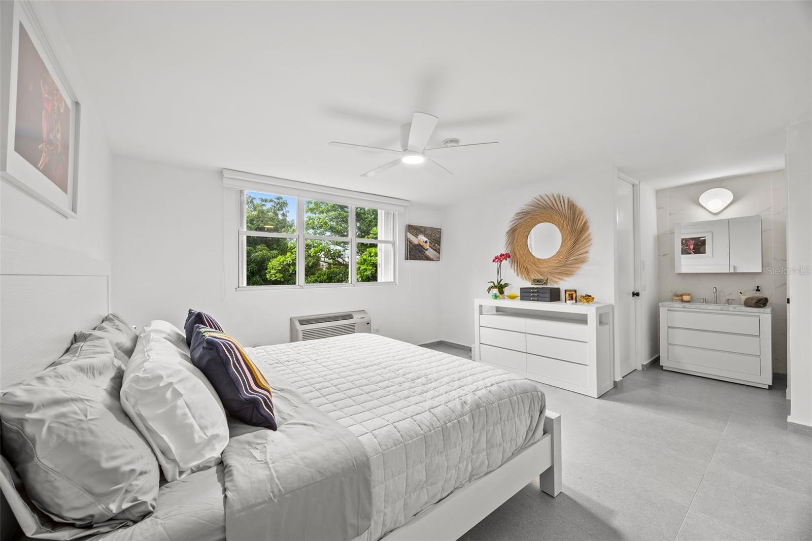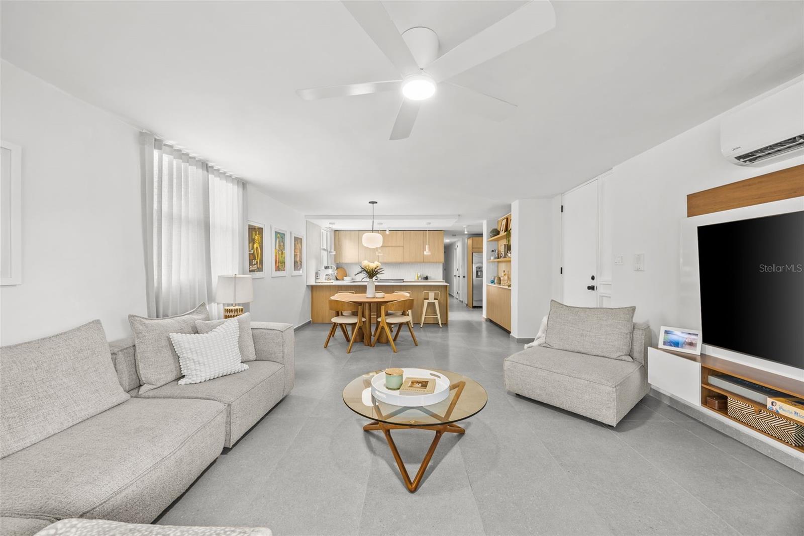 Experience modern coastal living in this beautifully remodeled 3-bedroom, 2-bathroom apartment at Condado Classic, ideally located in the heart of Condado along Wilson Avenue. Offering 1,469 square feet of GLA, this residence features a bright and airy open layout that creates a seamless flow between the living, dining, and kitchen areas—perfect for both everyday living and entertaining. Fully renovated and equipped, the unit showcases a sleek Iconika Italian kitchen, contemporary finishes throughout, and a laundry room with utility sink, blending style and functionality with ease.