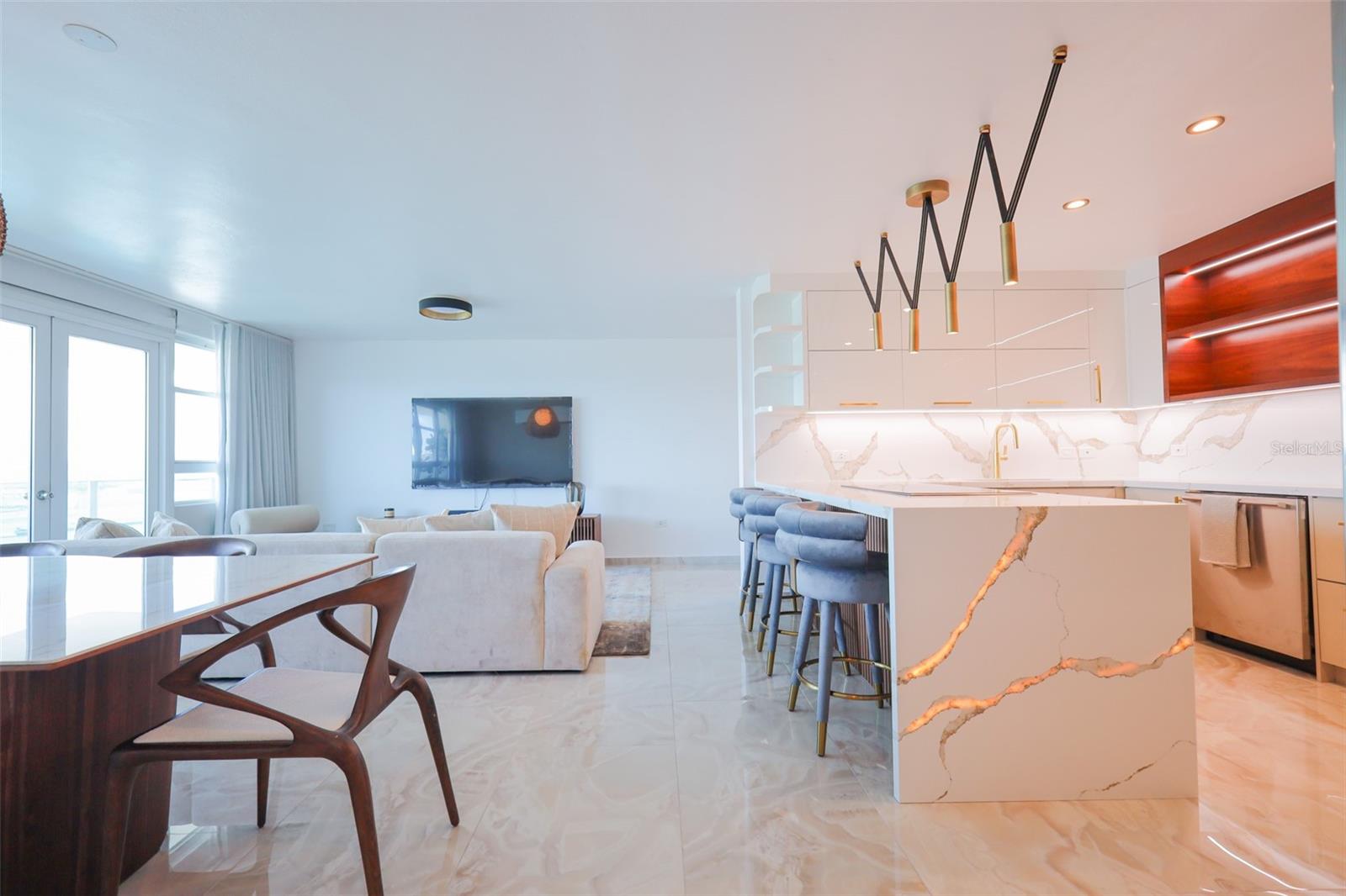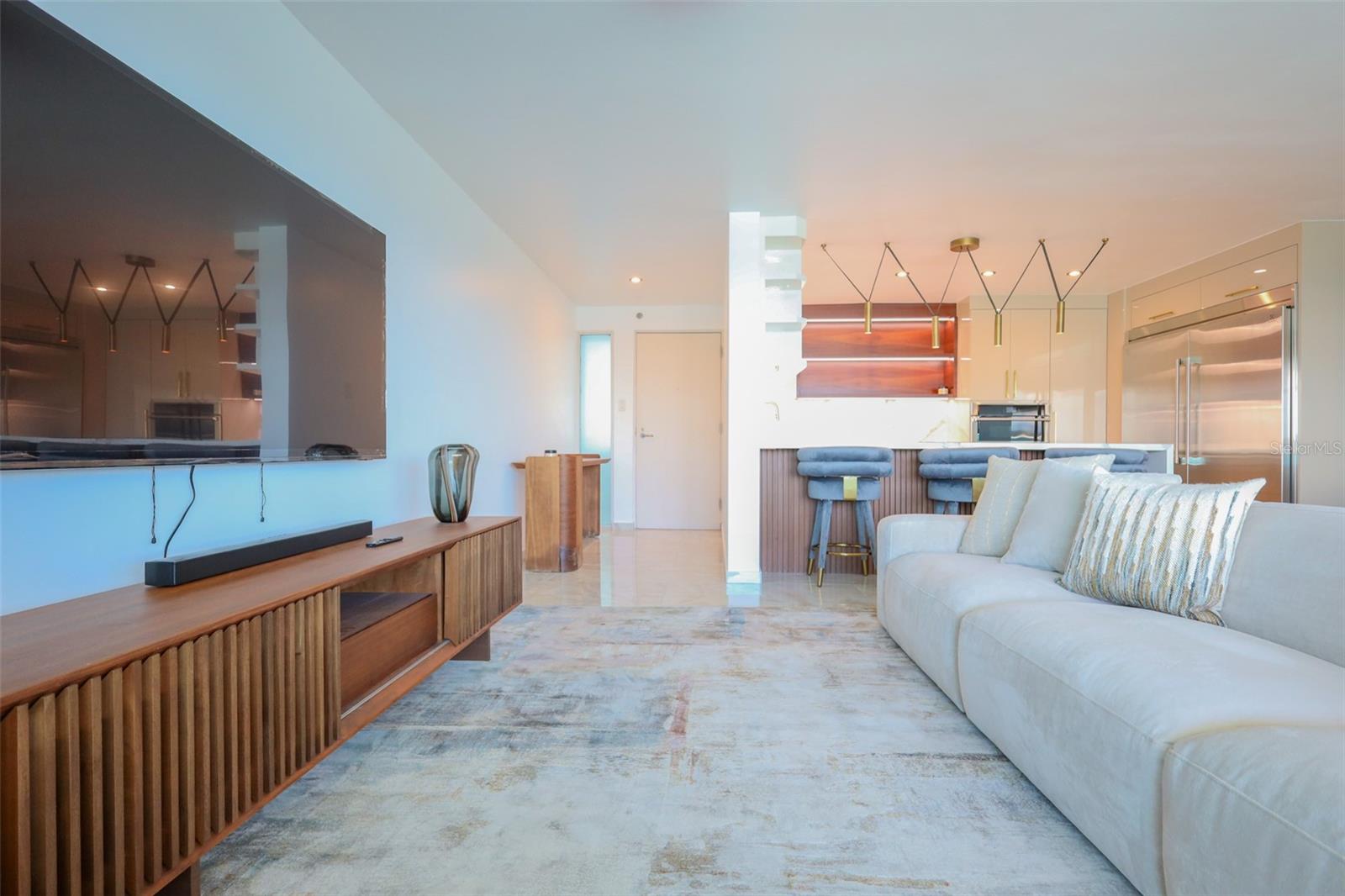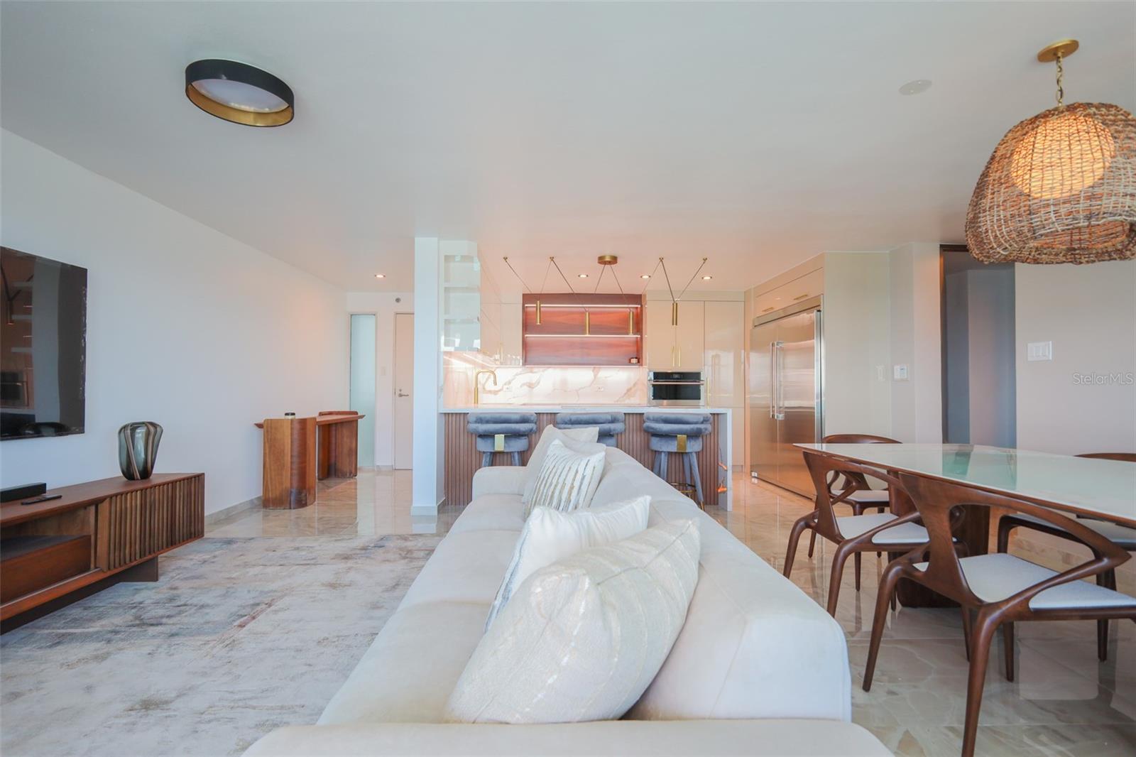 Recently remodeled to perfection, every detail of this residence is brand new—from flooring and custom cabinetry to designer furnishings and top-tier appliances. The open-concept layout seamlessly integrates the kitchen, living, and dining areas, creating a sophisticated yet comfortable environment ideal for both everyday living and entertaining. Floor-to-ceiling views extend from the living room onto a private balcony, capturing some of the most breathtaking vistas in the city.